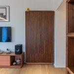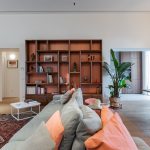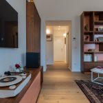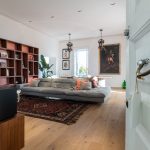 L’appartamento di circa 100 metri quadri si trova all’interno di una villa Liberty degli inizi del Novecento. Il progetto ha interessato tutta l’abitazione, in cui sono stati ridisegnati interamente gli spazi. Il fulcro della casa è una grande zona living, con ambienti contigui di cucina e soggiorno. Mentre la zona notte è contrassegnata dalla zona patronale, con camera da letto, bagno e cabina armadio, e un’altra stanza con bagno. In questa casa abbiamo mantenuto alcuni elementi storici, come gli scuri dell’epoca, che si contrappongono ad altre rifiniture moderne.