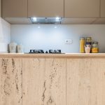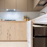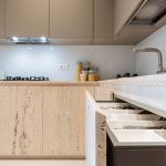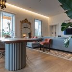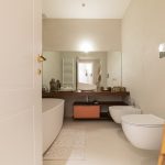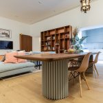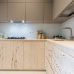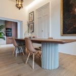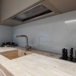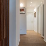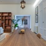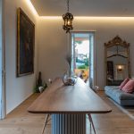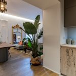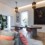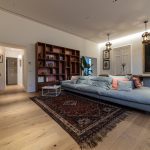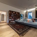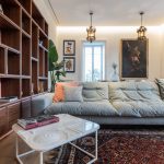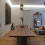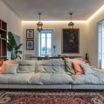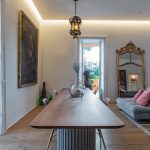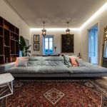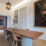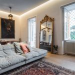 L’appartamento è in stile contemporaneo e abbiamo giocato con le contrapposizione non solo per gli elementi architettonici interni, ma anche con i materiali. Tutta la cucina, ad esempio, è rifinita in marmo massello a contrasto con elementi più classici della zona living. Anche il progetto illumino-tecnico ha tenuto conto delle caratteristiche storiche dell’immobile, visto che abbiamo soffitti alti oltre i 4 metri.