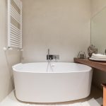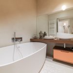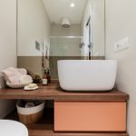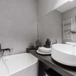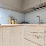 Per conferire a tutto l’ambiente uno stile contemporaneo nella maggior parte dell’abitazione troviamo il parquet, tranne in cucina e in bagno dove sono state scelte delle superfici in micro-cemento, abolendo così le fughe.