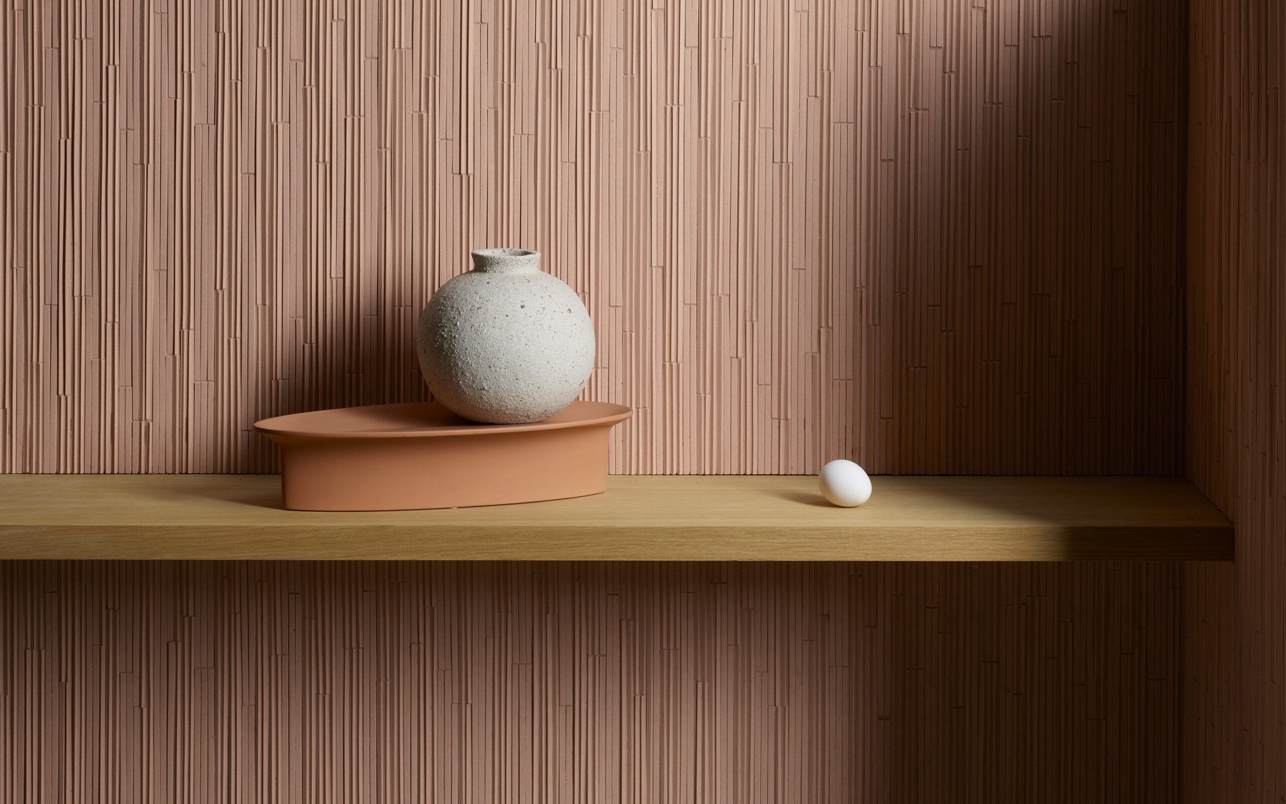 Le superfici stesse possono diventare opere d’arte:, un esempio è la collezione Phenomenon di Mutina che offre moduli in gres porcellanato con tessere di piccolo formato e finiture particolari, ideali per pareti‑scultura.