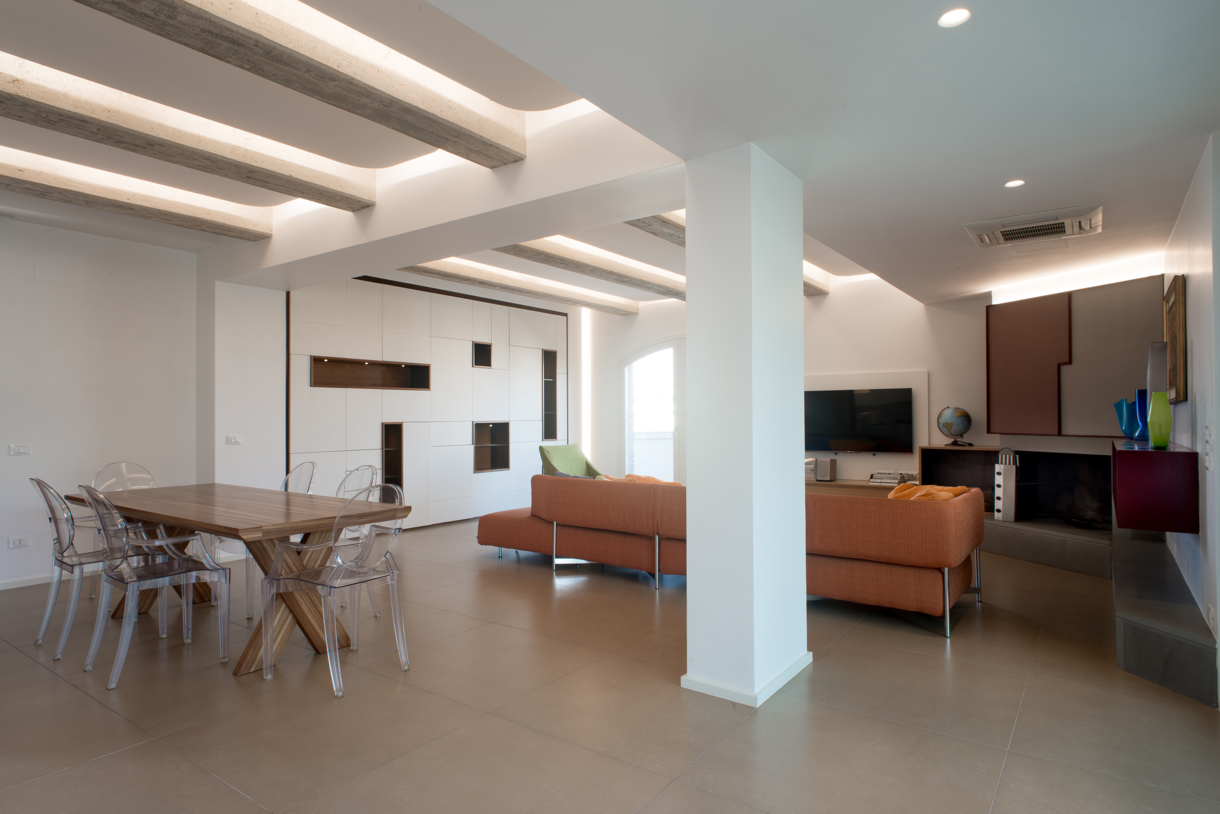 Quest’attico nel centro urbano di Aversa potrebbe essere definito un’abitazione da rivista. Qui lo spazio è stato strutturato per vivere a pieno ogni area della casa, conferendo indipendenza a zone living a zona notte.