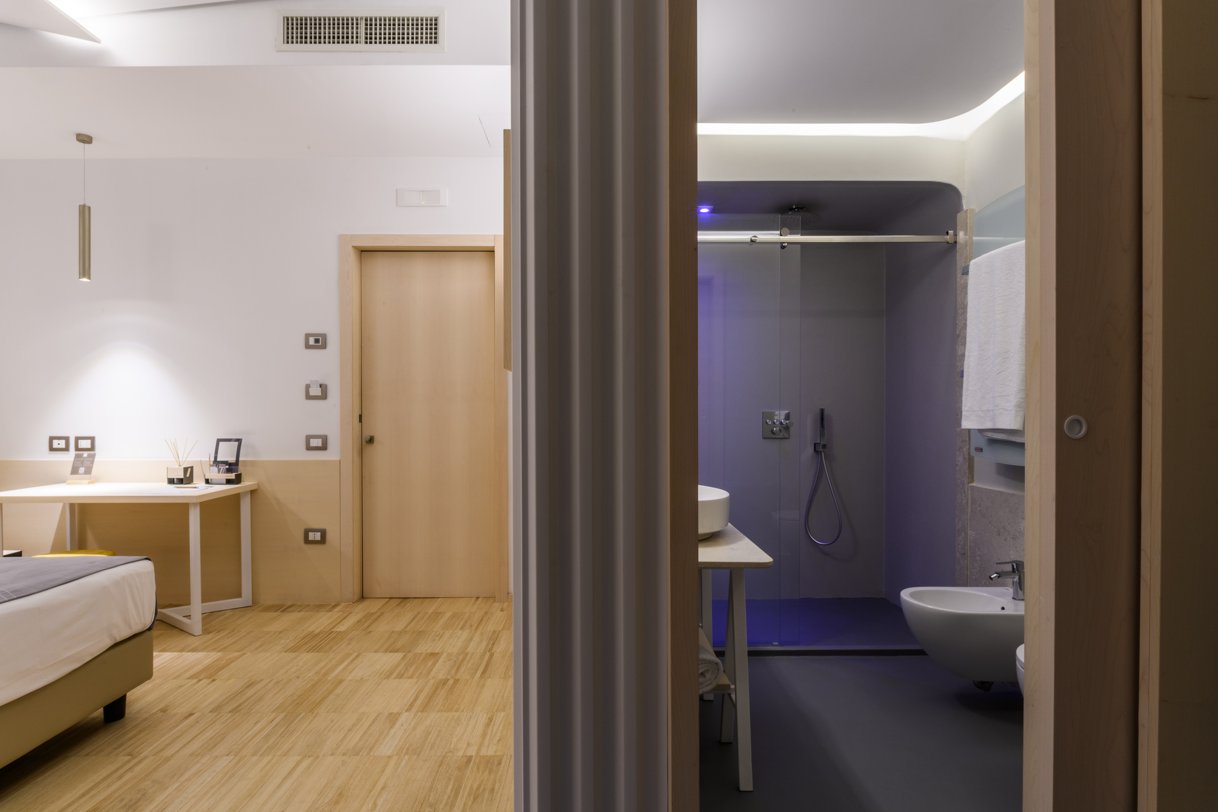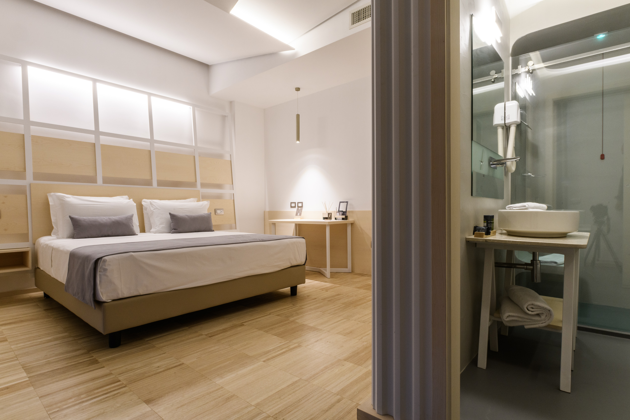 La struttura nasce come ex ufficio di un capannone industriale. Per cui gli spazi e l’ambiente erano precedentemente destinati ad un uso prettamente d’ufficio. Grazie al progetto visionario e alla competenza e professionalità di tutto il team siamo riusciti ad ottenere un grande risultato, rivoluzionando un ex capannone industriale trasformandolo in una struttura ricettiva di grande impatto.