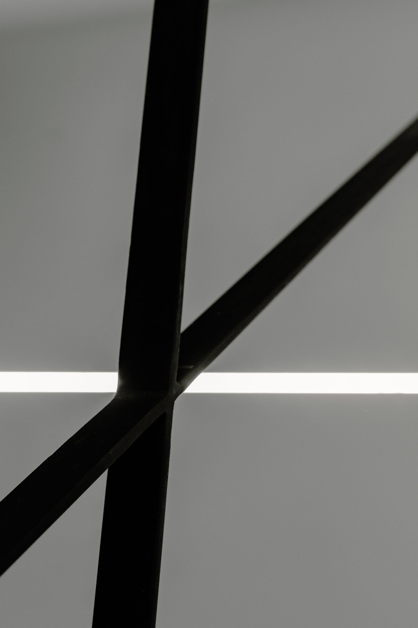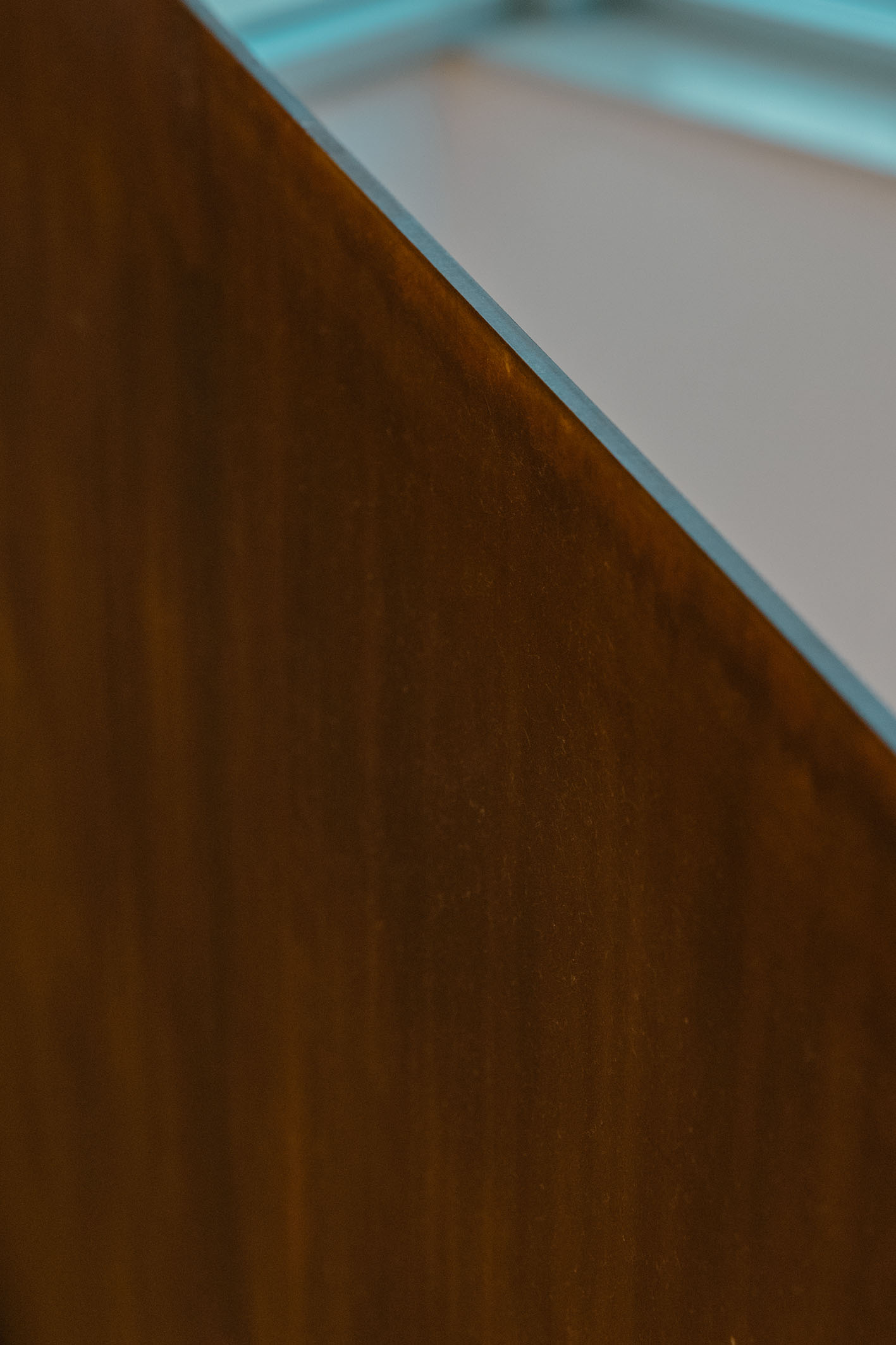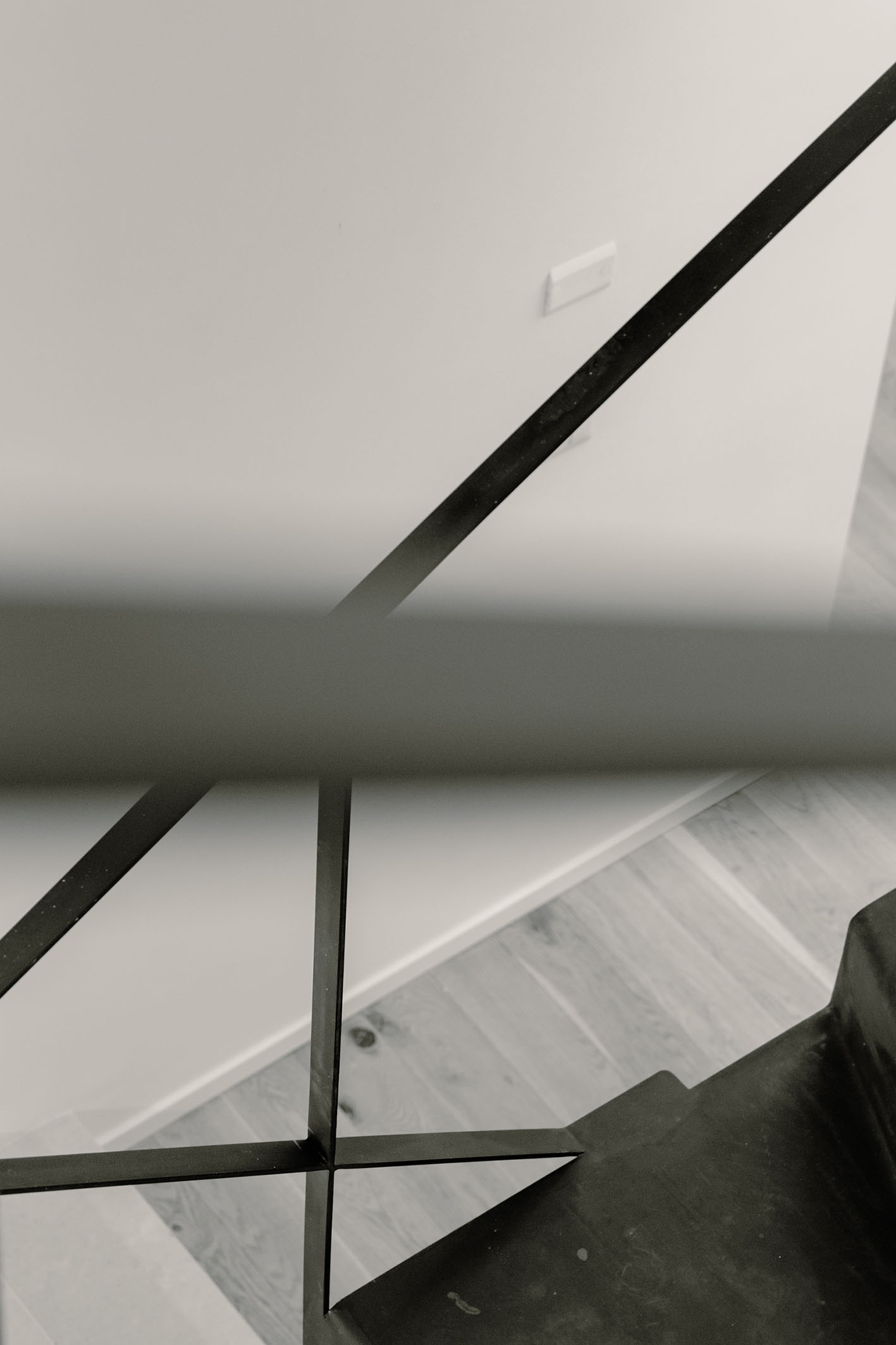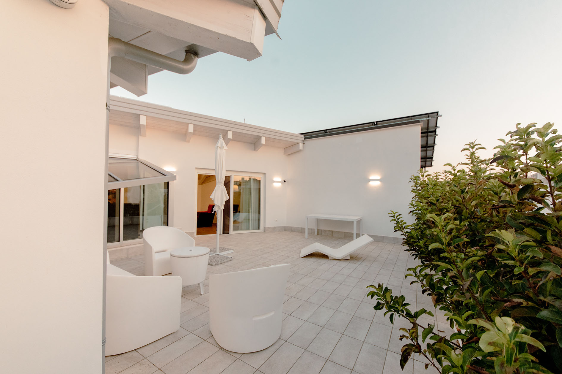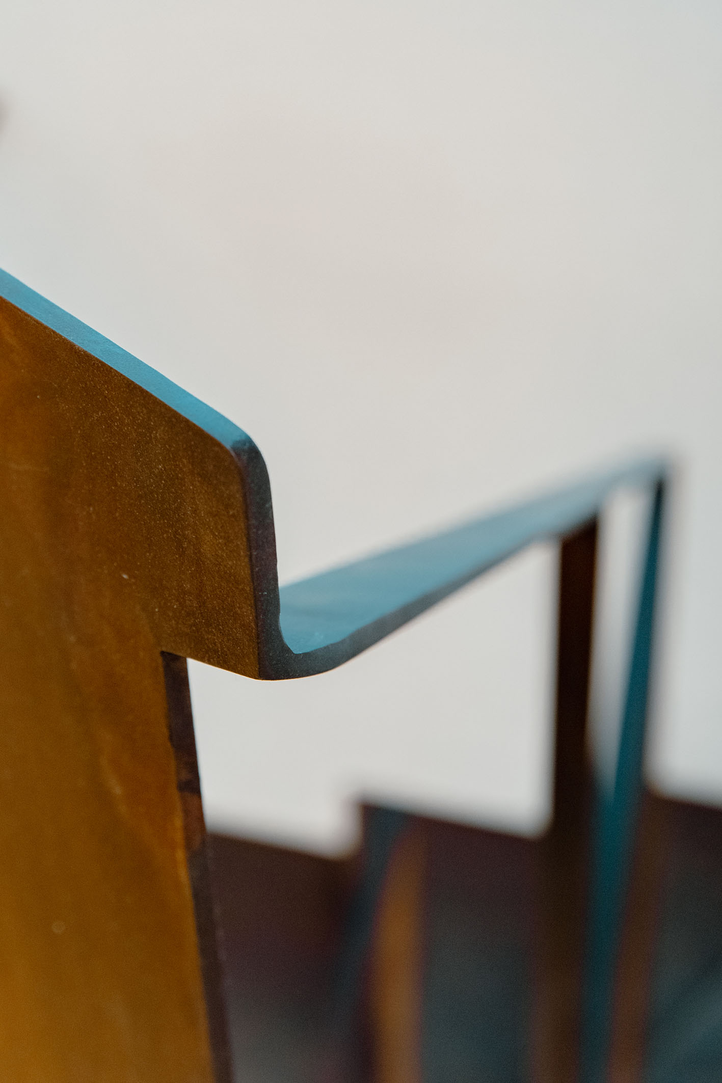 Da queste meditazioni nasce l’idea del progetto di architettura, dapprima utopico immateriale come visione intangibile che si trasferisce attraverso, il gesto, sulla carta prima e poi in corporeo nella mera realizzazione materiale attraverso la costruzione, la “téchne”. Tipologicamente lo spazio residenziale si connette in un sistema duplex, in verticale, mediante una scala immaginata in lamiera piegata in acciaio cor-ten, che si diparte racchiusa in un involucro di vetro. Il vetro incorniciato dai serramenti è il punto focale del progetto, perché elemento che si interpone tra l’esterno e l’interno utilizzando come fattore sensoriale la luce, elemento principale del progetto. Nel livello inferiore sono disposte le funzioni definibili giorno, quali ingresso, cucina che presenta una parete completamente vetrata, ed area ludica. Al livello superiore l’area notte e la zona conviviale, connesse con un ampio terrazzo dove vivere a contatto con l’esterno. L’atmosfera conseguita è una sensazione di avvolgente tepore e senso di certezza dato dalle scelte cromatiche e materiche.