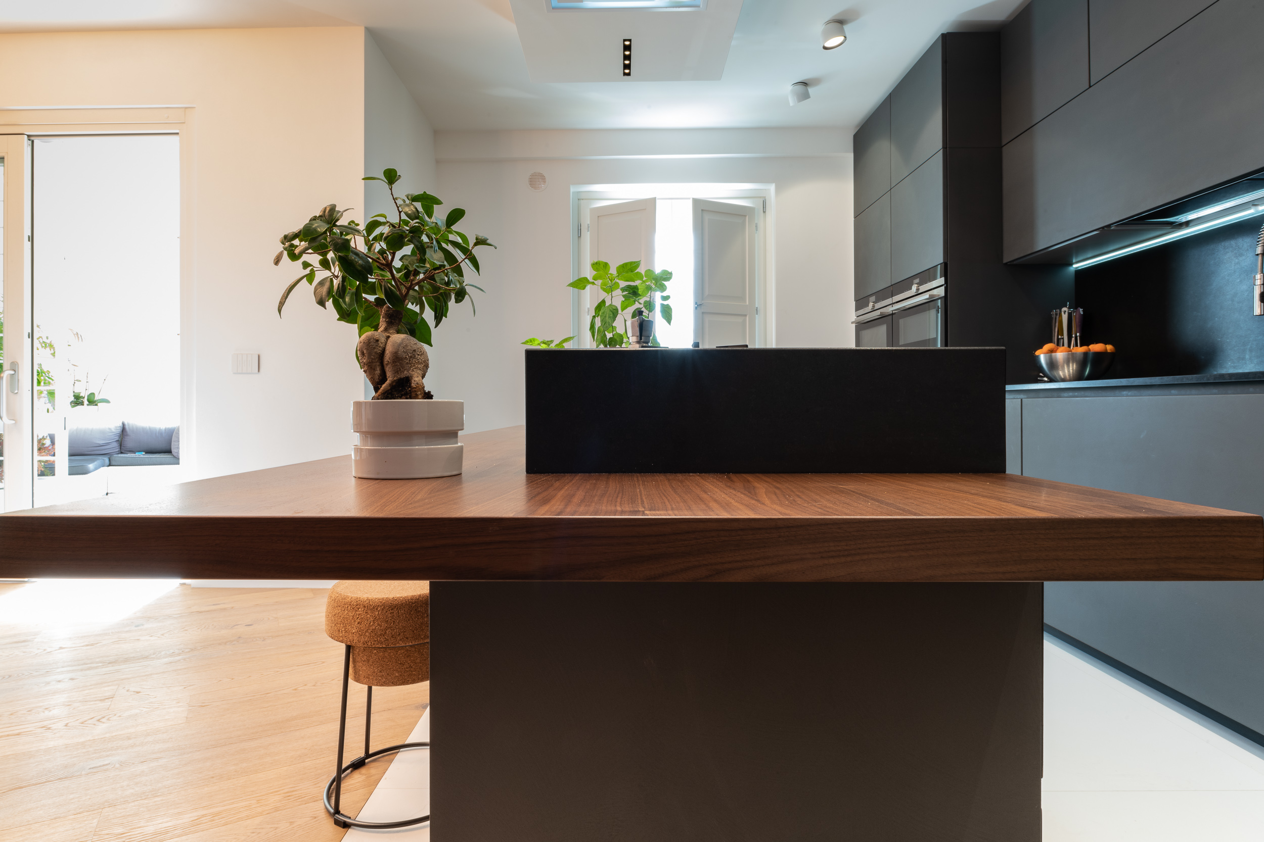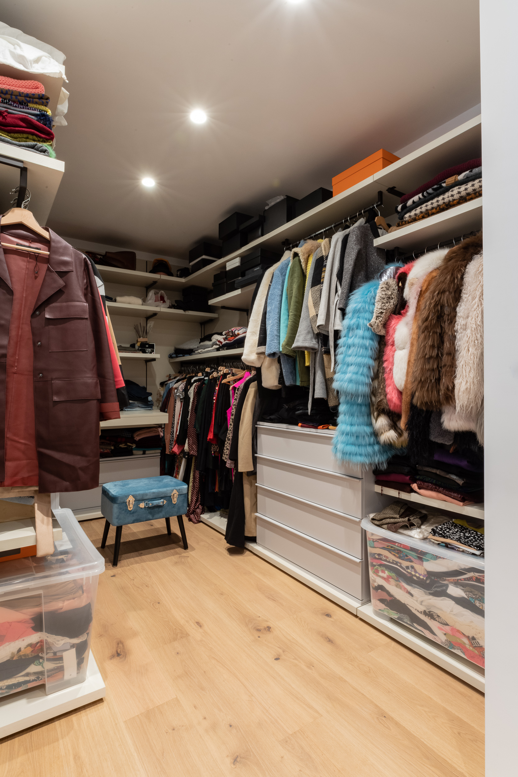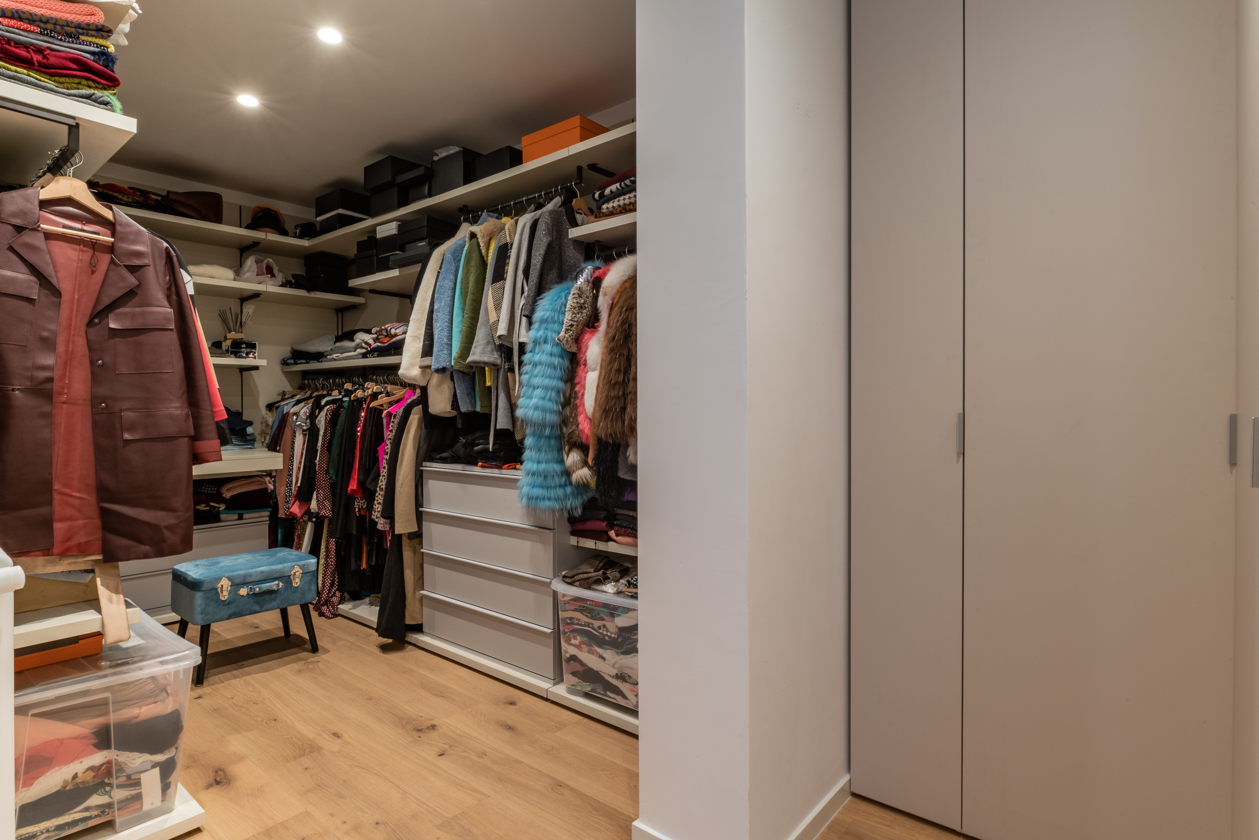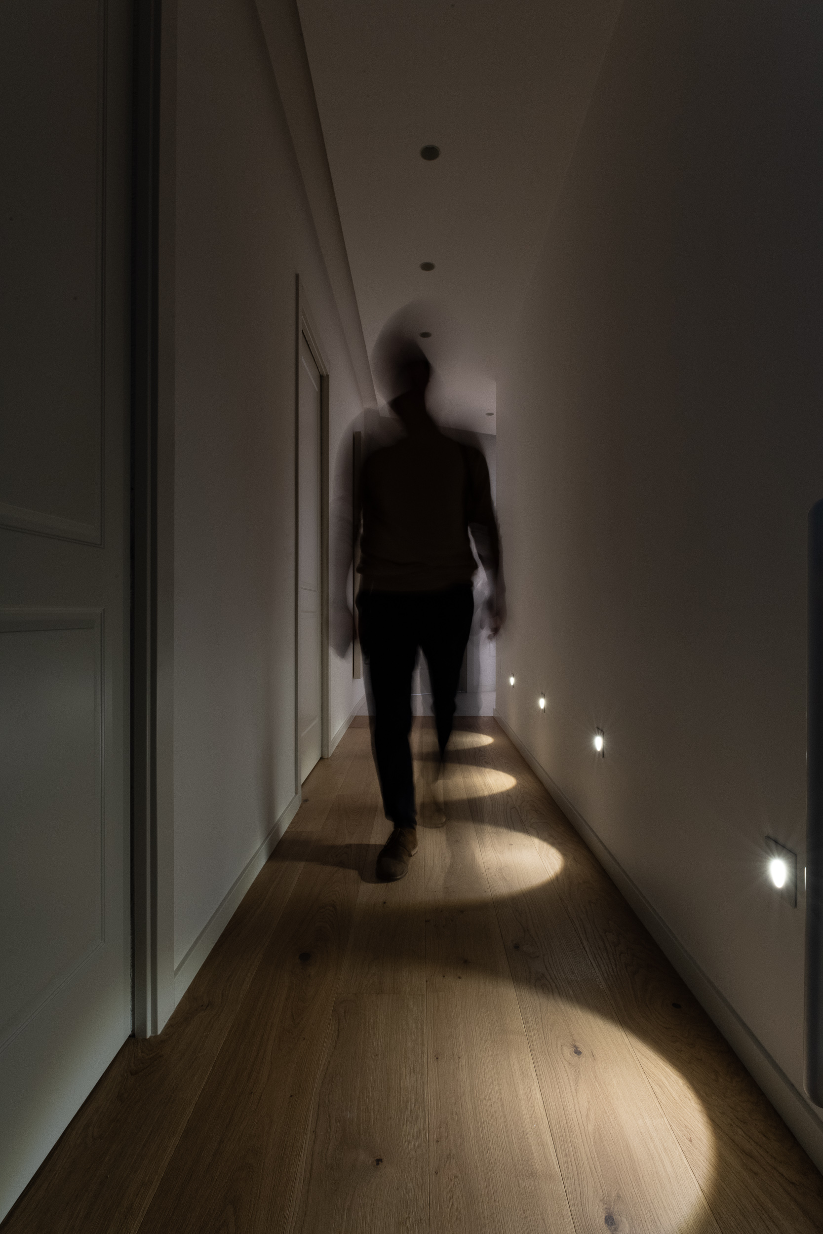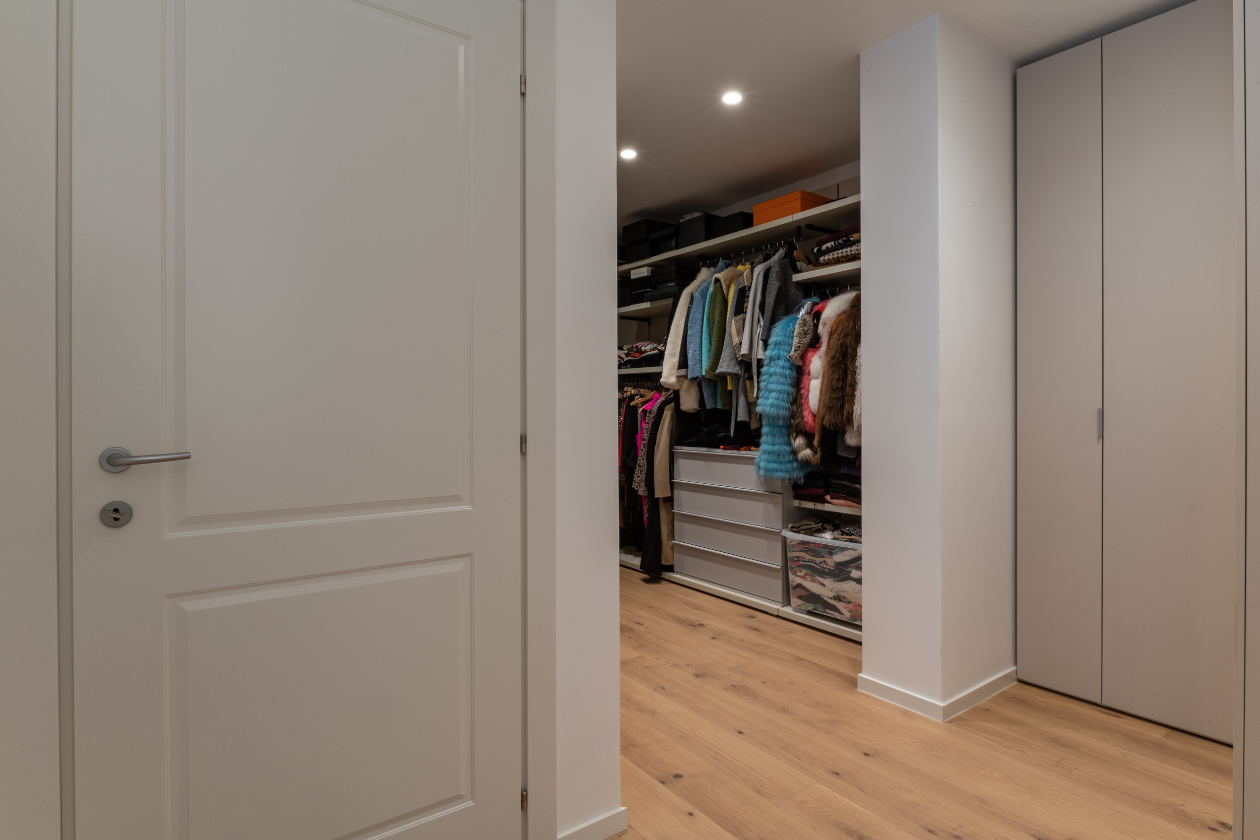 L’abitazione è stata rifinita in stile contemporaneo, con un gusto ne classico ne moderno ma dove suggestioni del passaggio con intuizioni futuristiche si sposano bene per rendere l’ambiente vivibile e piacevole. Per sottolineare la natura di questo stile abbiamo lavorato sull’impianto illumino-tecnico e progettato arredi dallo stile classico con materiali quali noce canaletto e metallo. Lo stile contemporaeno è sottolineato anche dalla scelta dei materiali, com e il parquet in quasi tutti gli ambienti.