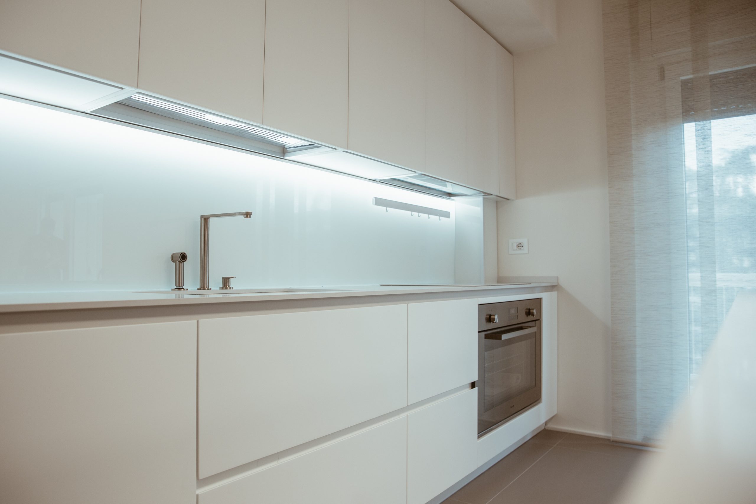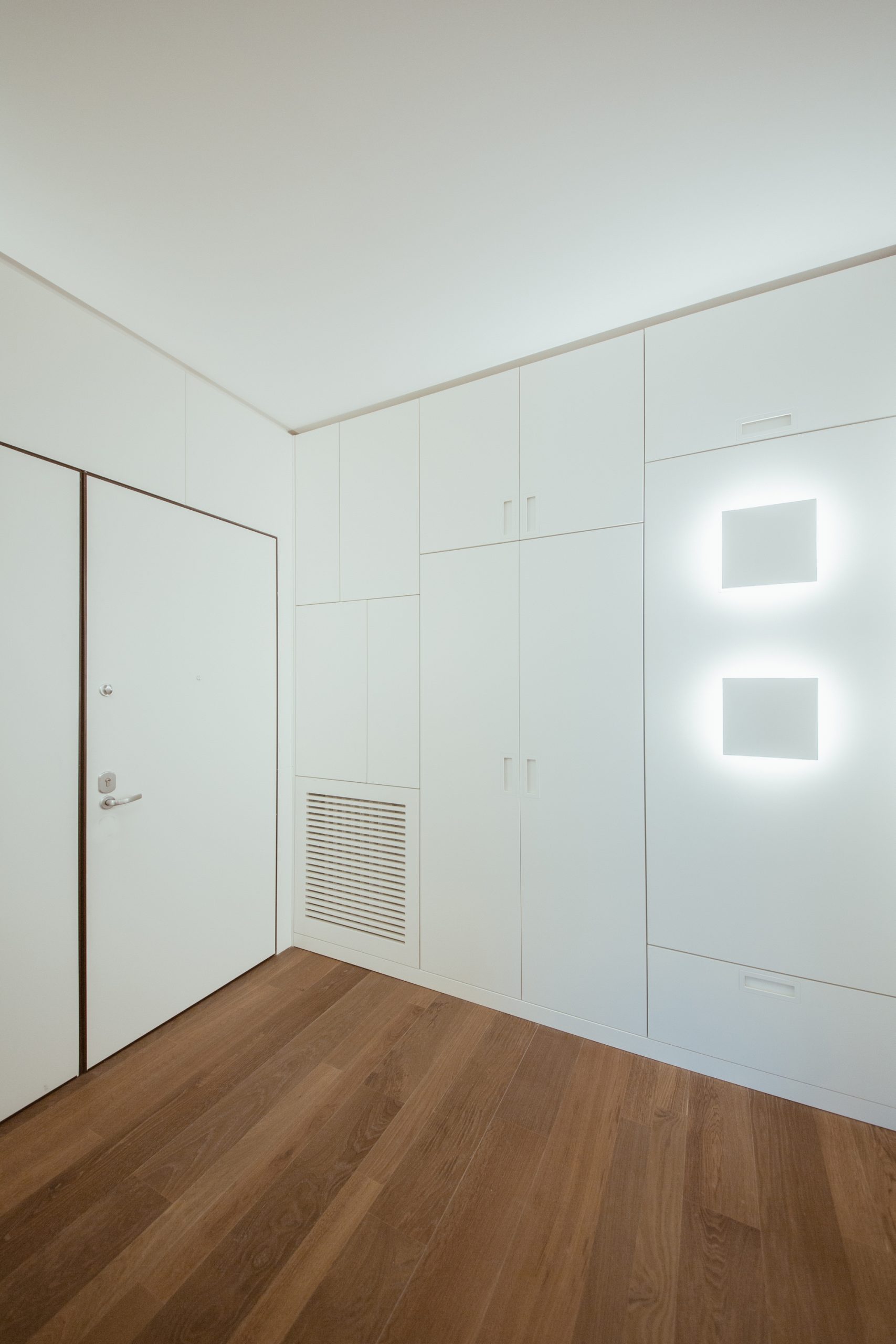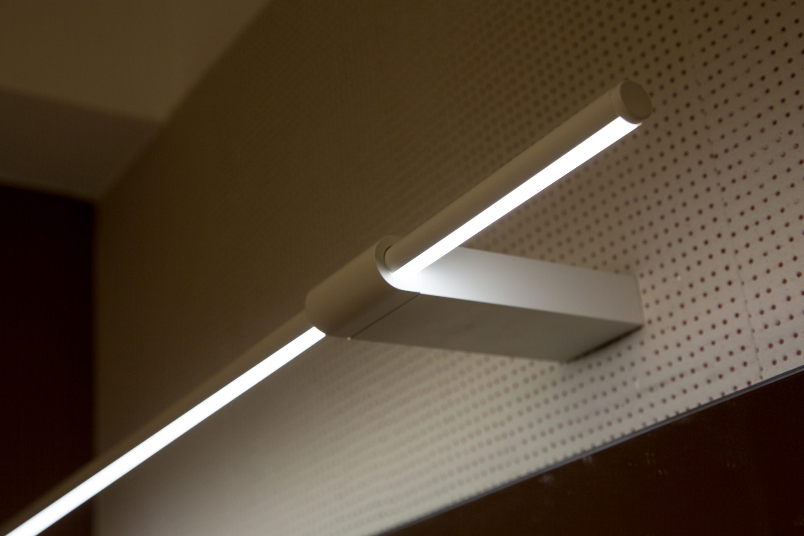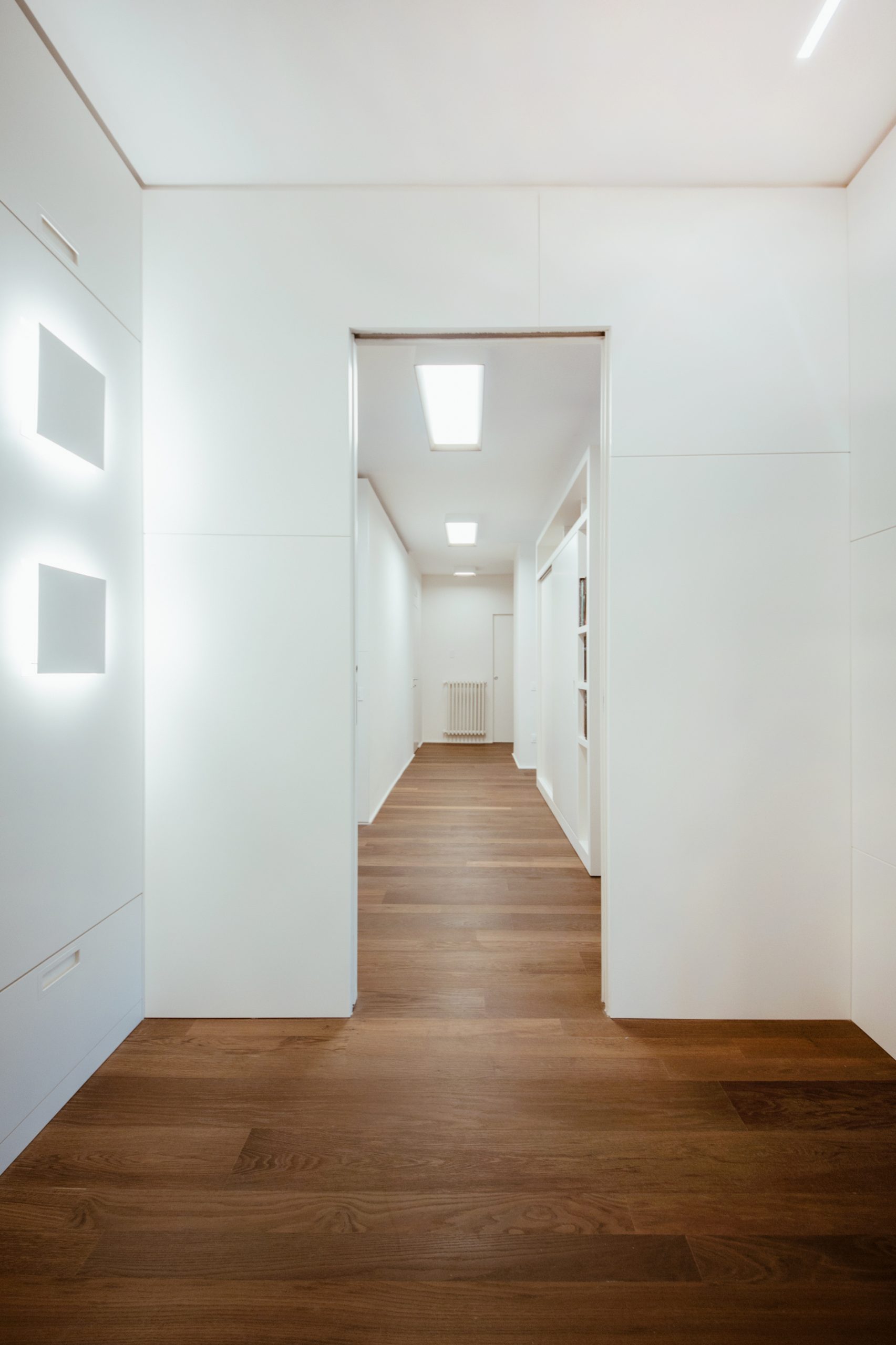 Le luci si mostrano, anche esse, come geometrie semplici, laddove sospese o semplici quadri a soffitto, talvolta invisibili, altre volte orgogliose. Ma sempre elementari e confortanti.
