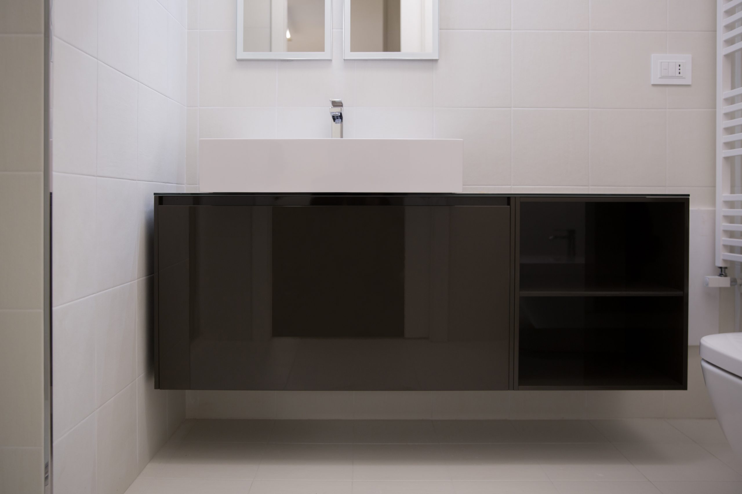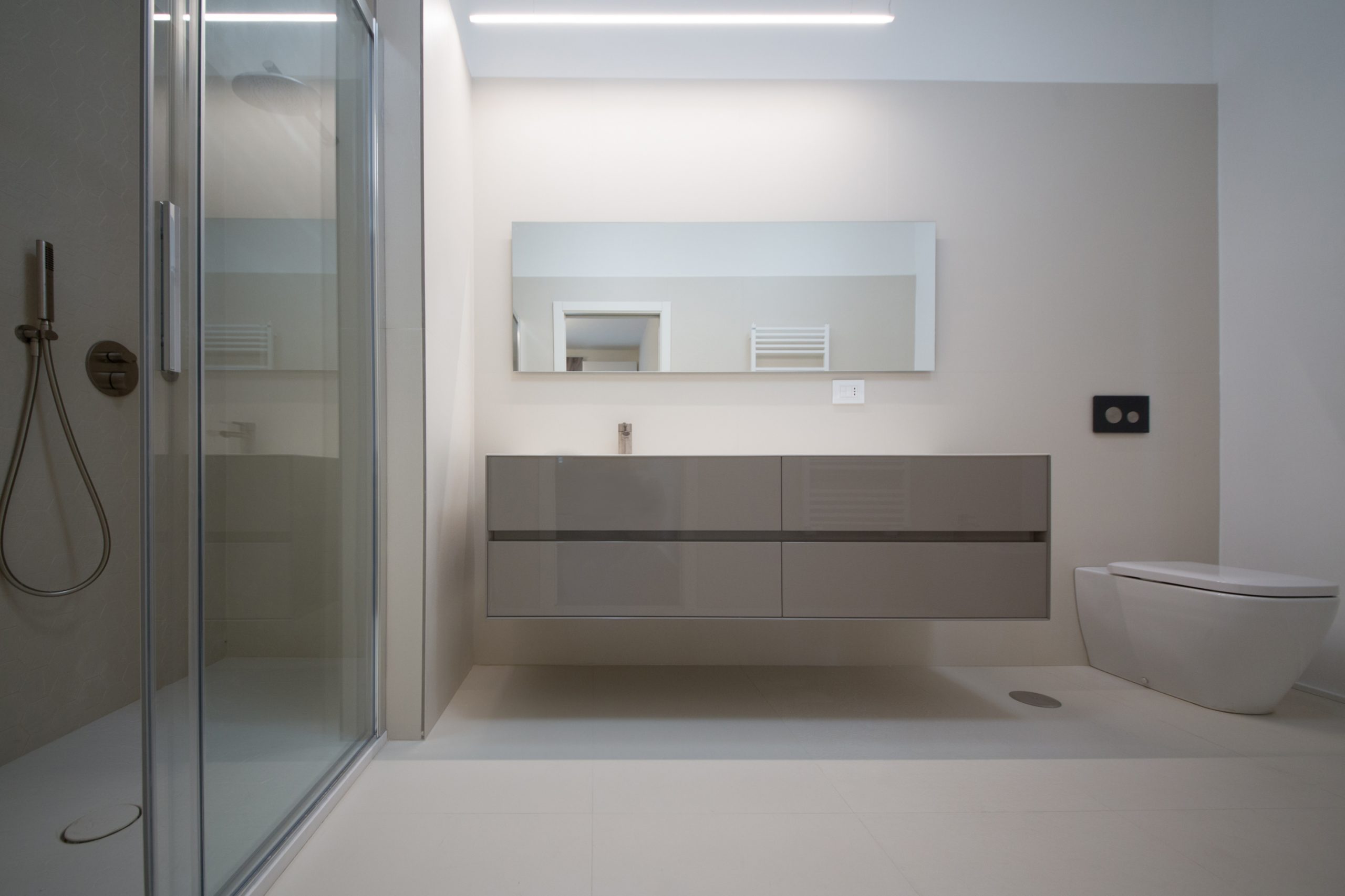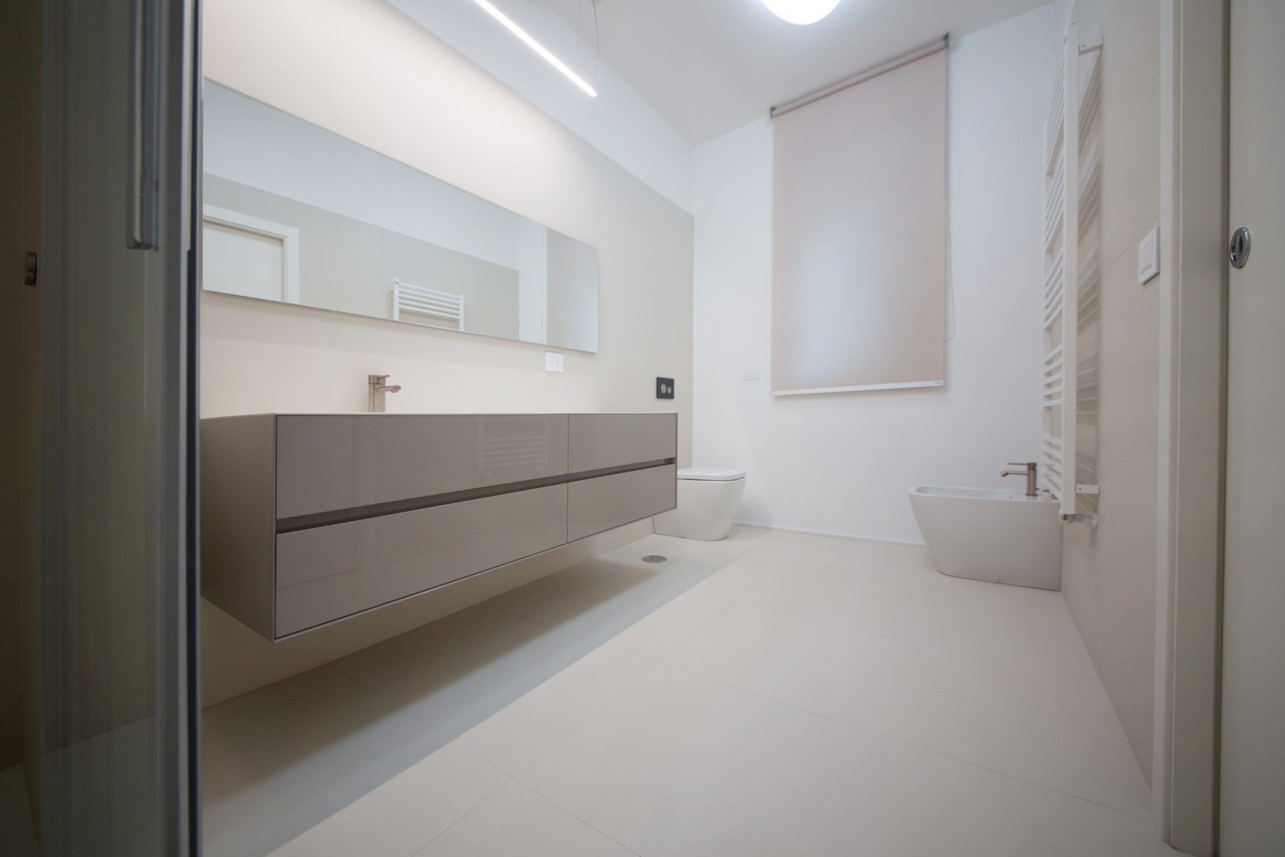 I locali igienici rispettano la sobrietà e la volontà di geometria elementare.
