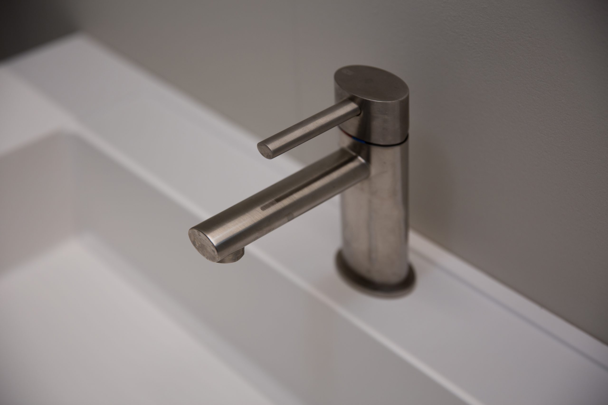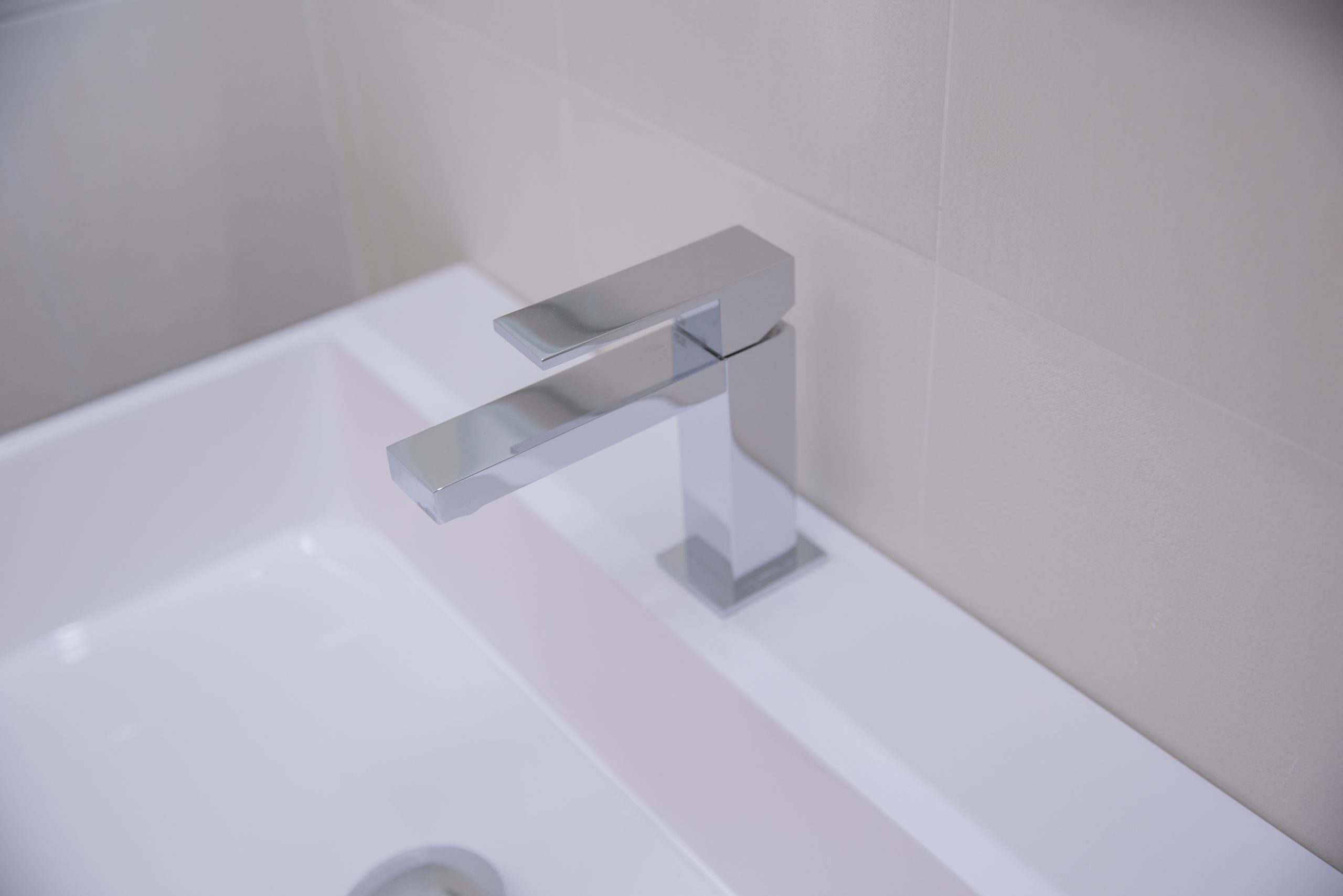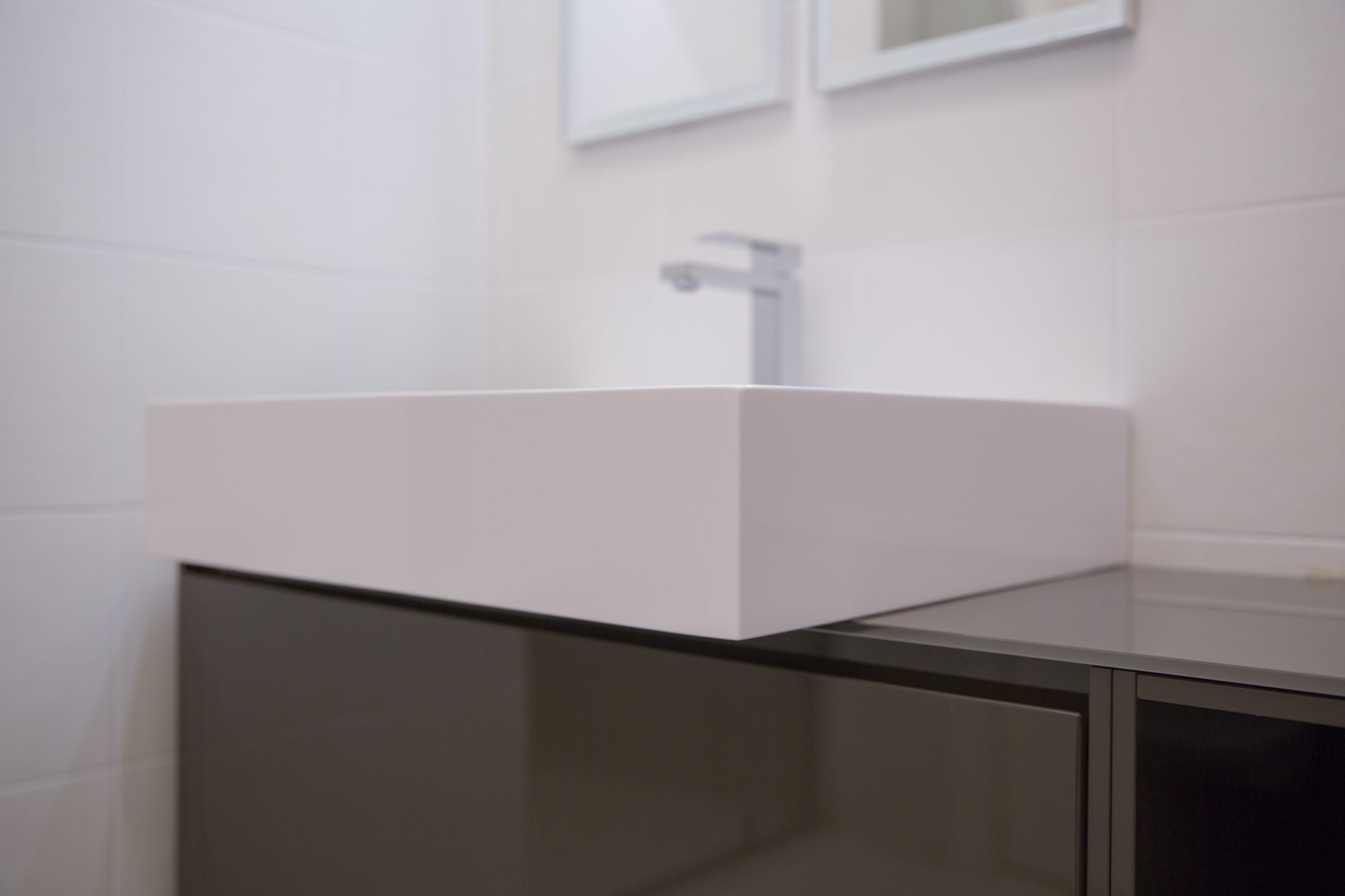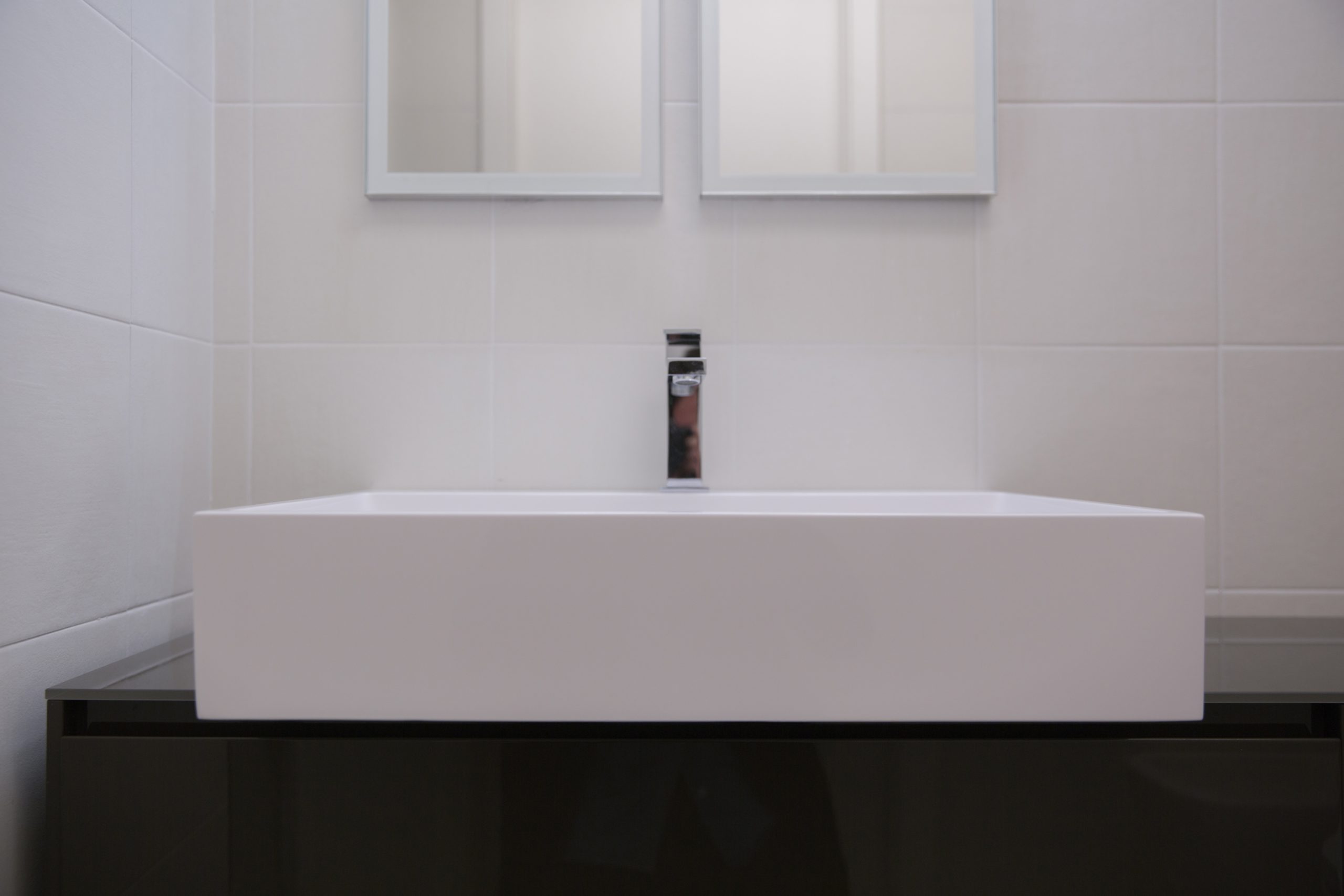I locali igienici rispettano la sobrietà e la volontà di geometria elementare.