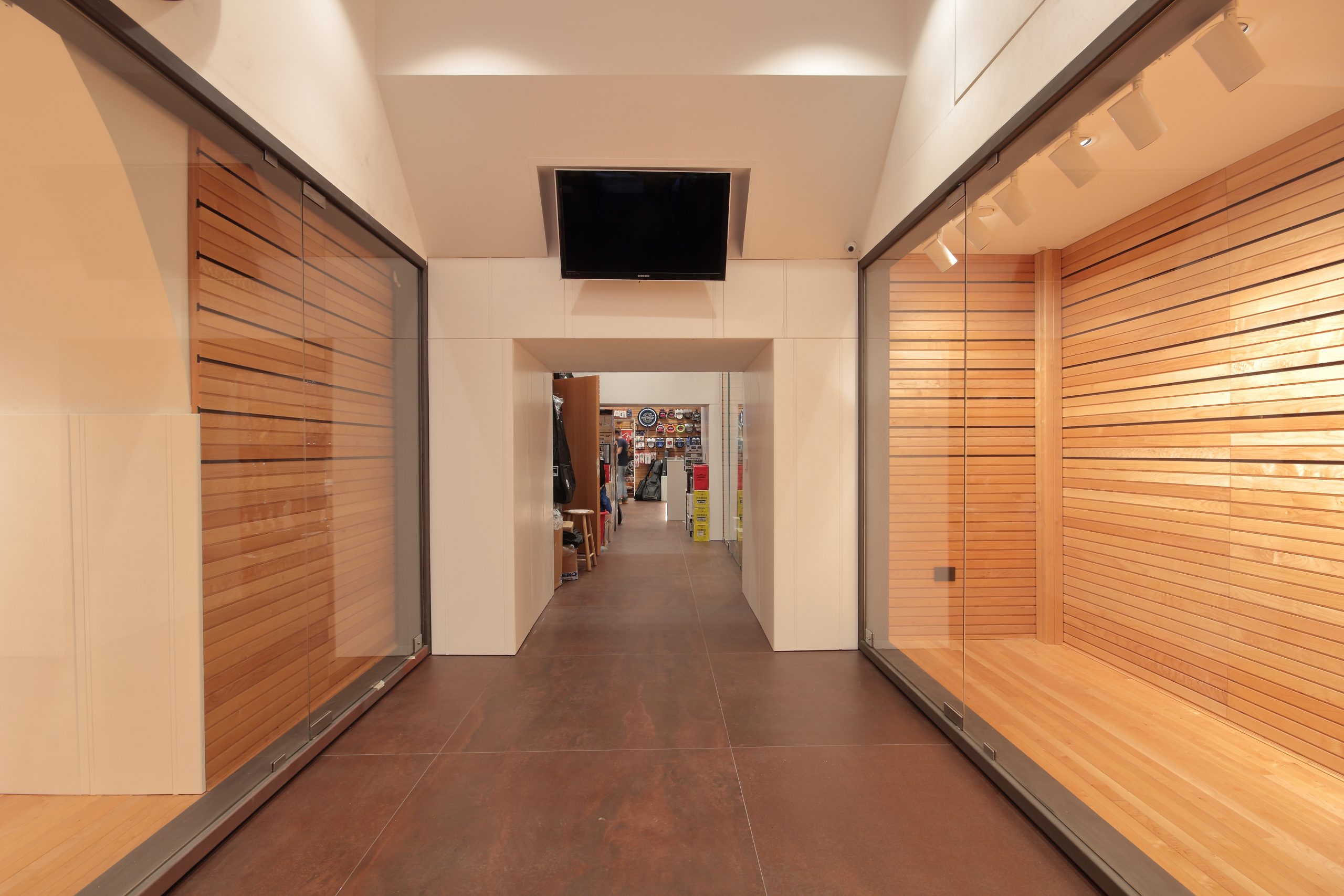 Il grès porcellanato in questo progetto è stata la scelta ideale perché oltre al vasto ventaglio di possibilità estetiche e trattamenti, offre la disponibilità di un grande formato che ben si inserisce nei grandi ambienti oggetto della pavimentazione. Un altro punto a favore è l’estrema rigidezza richiesta dall’alto grado di utilizzo di questa tipologia di pavimento, soggetta a sollecitazioni straordinarie dovute al traffico intenso pedonale, ma soprattutto a quello di logistica. Il gr.s, inoltre, offre lunga durata, facilità di pulizia e grado di anti-scivolosità, aspetti molto adatti a un locale pubblico.