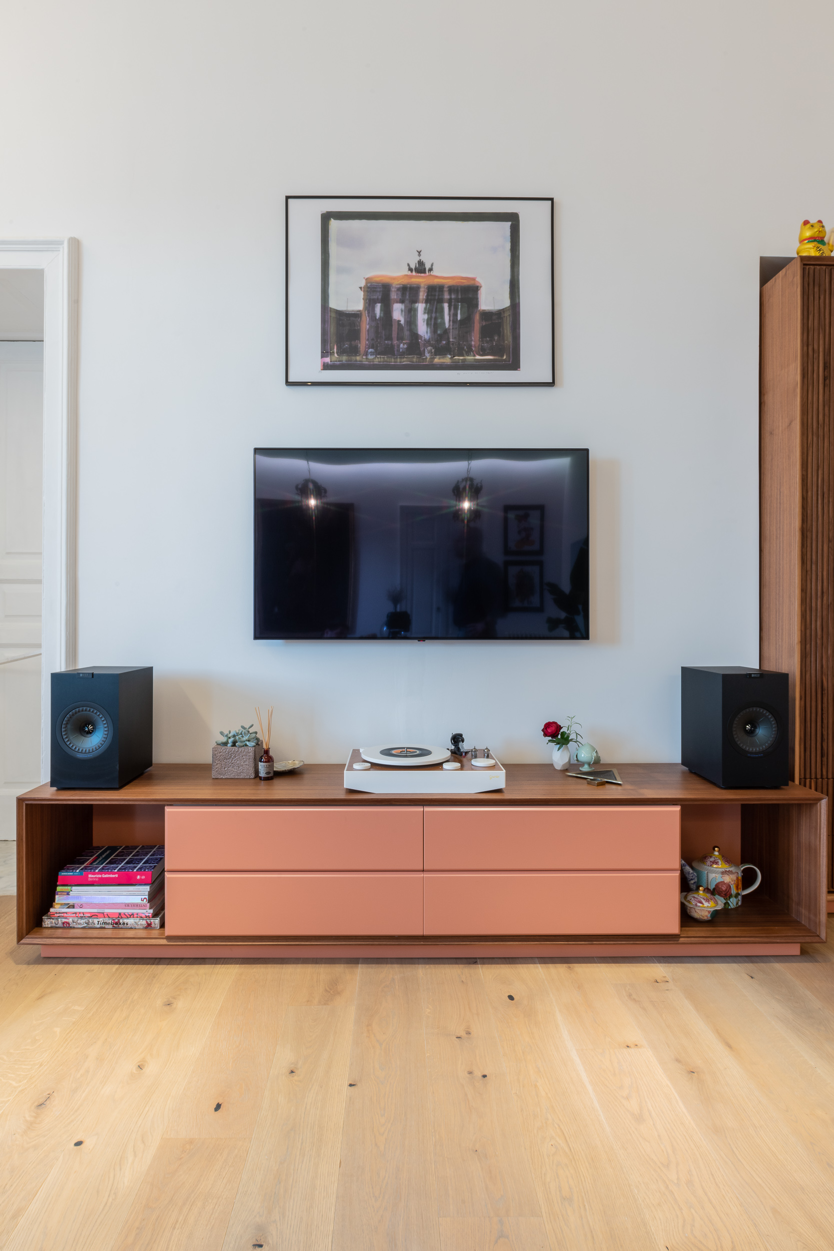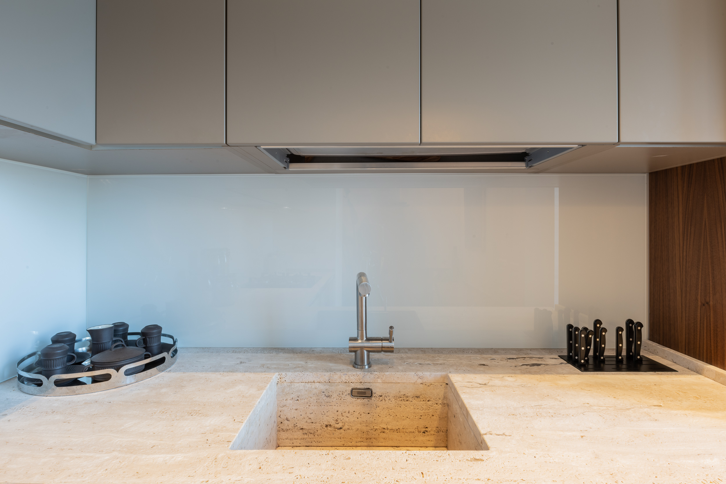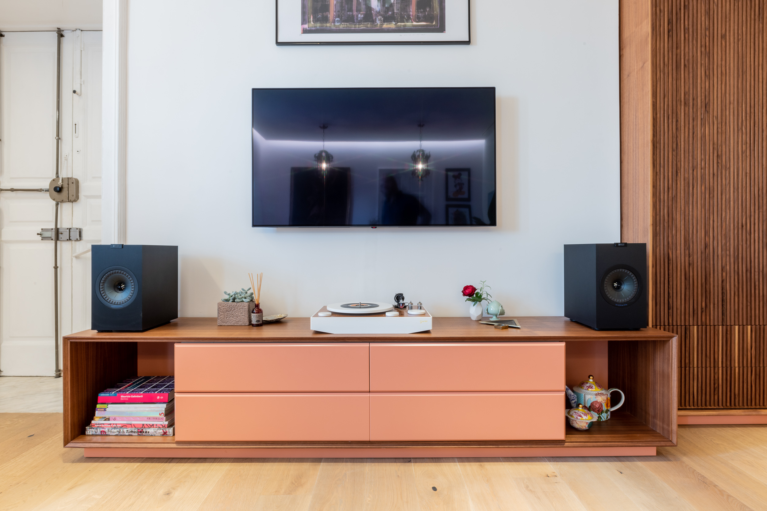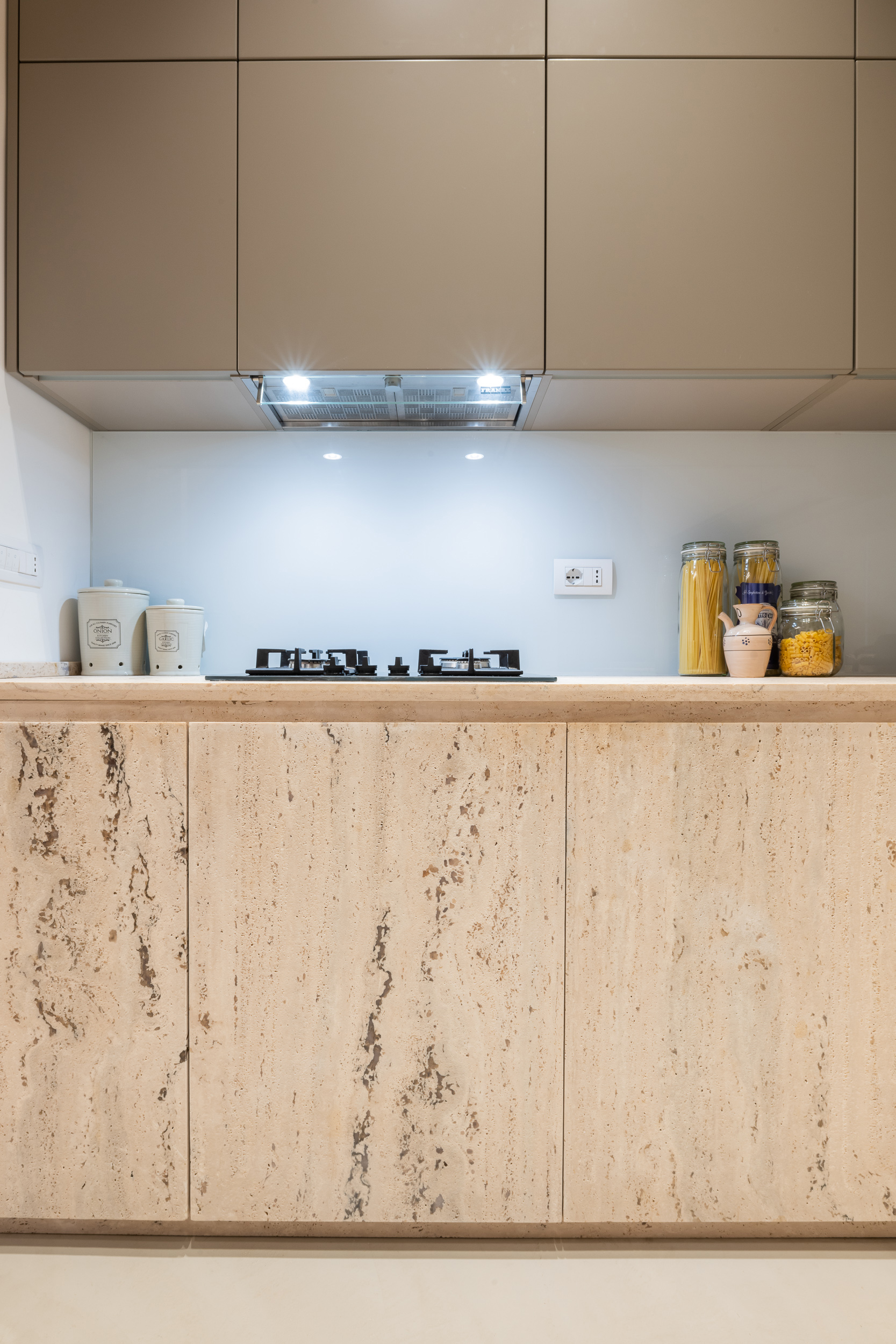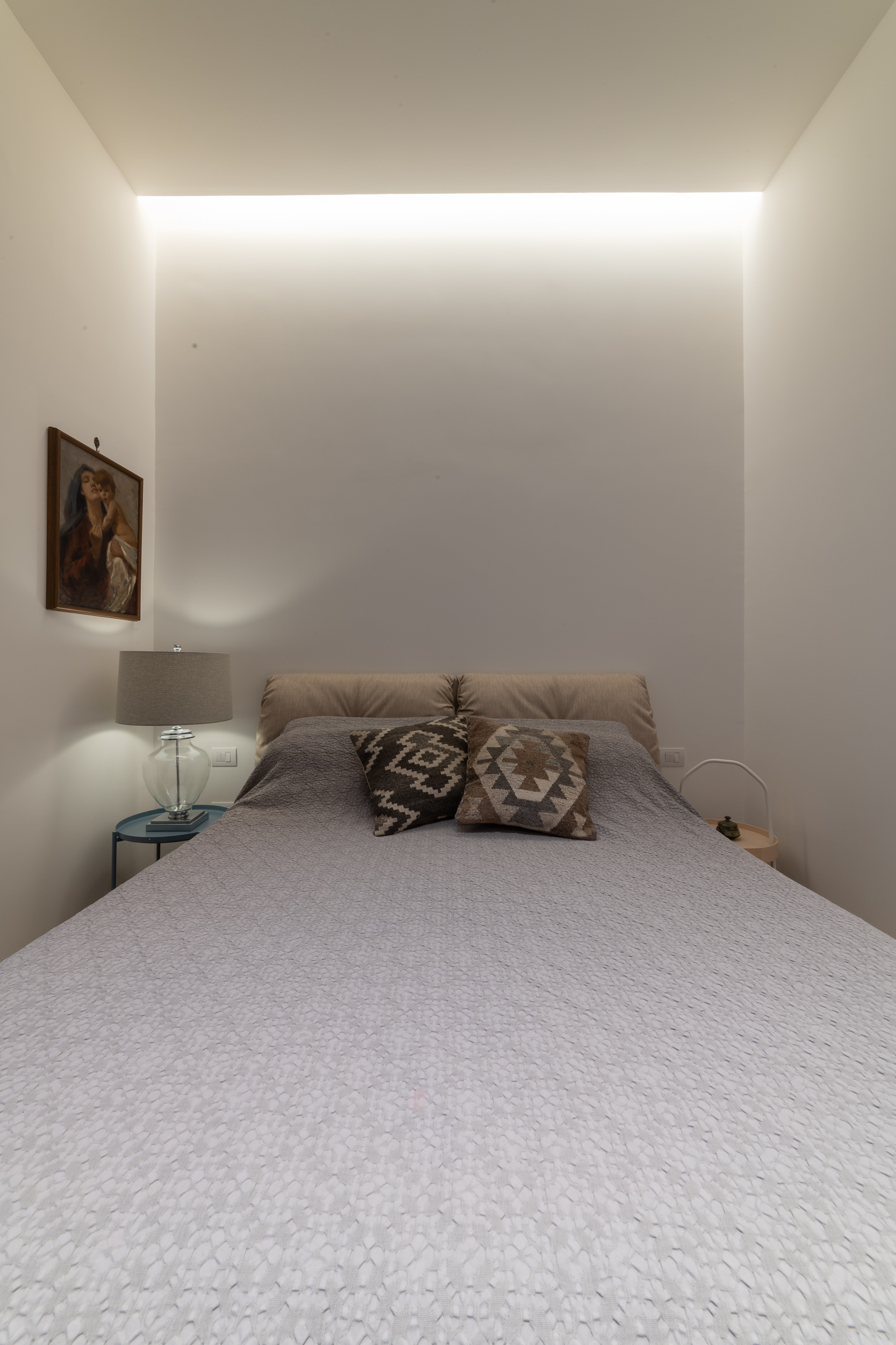 L’appartamento è in stile contemporaneo e abbiamo giocato con le contrapposizione non solo per gli elementi architettonici interni, ma anche con i materiali. Tutta la cucina, ad esempio, è rifinita in marmo massello a contrasto con elementi più classici della zona living. Anche il progetto illumino-tecnico ha tenuto conto delle caratteristiche storiche dell’immobile, visto che abbiamo soffitti alti oltre i 4 metri.