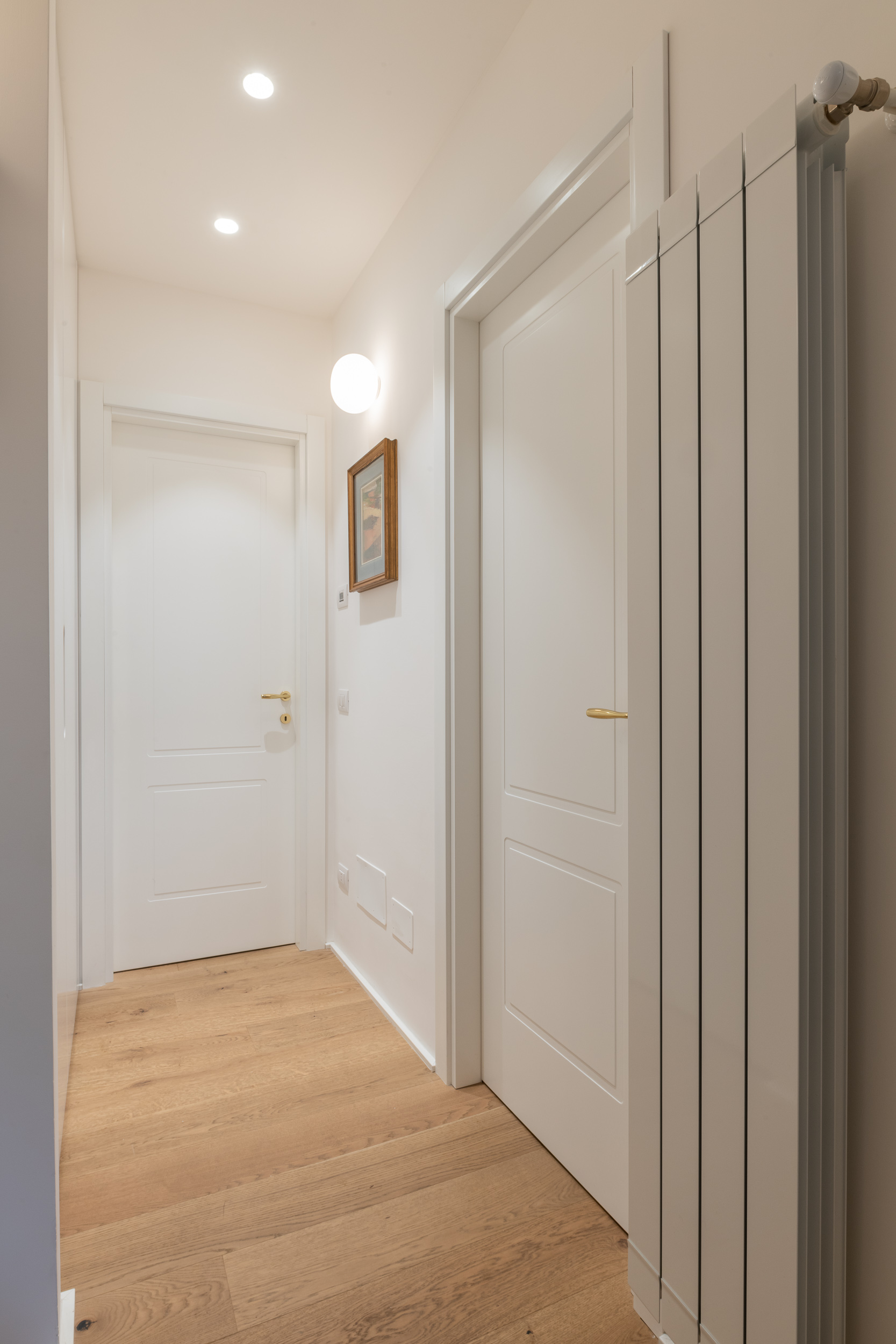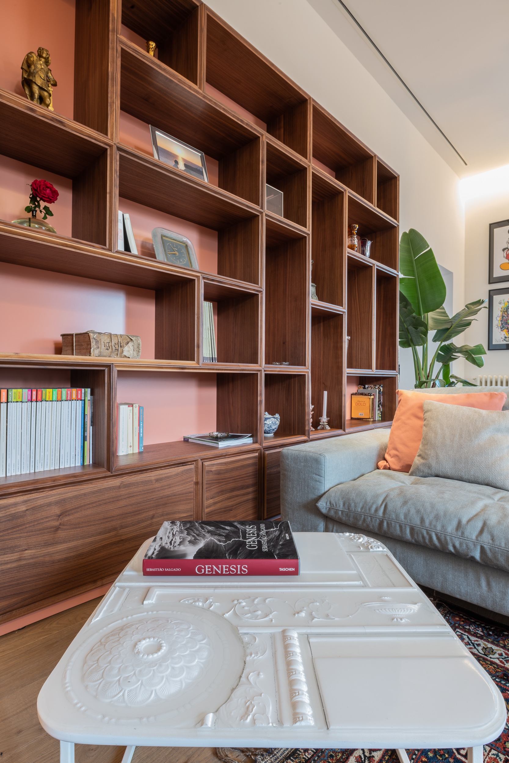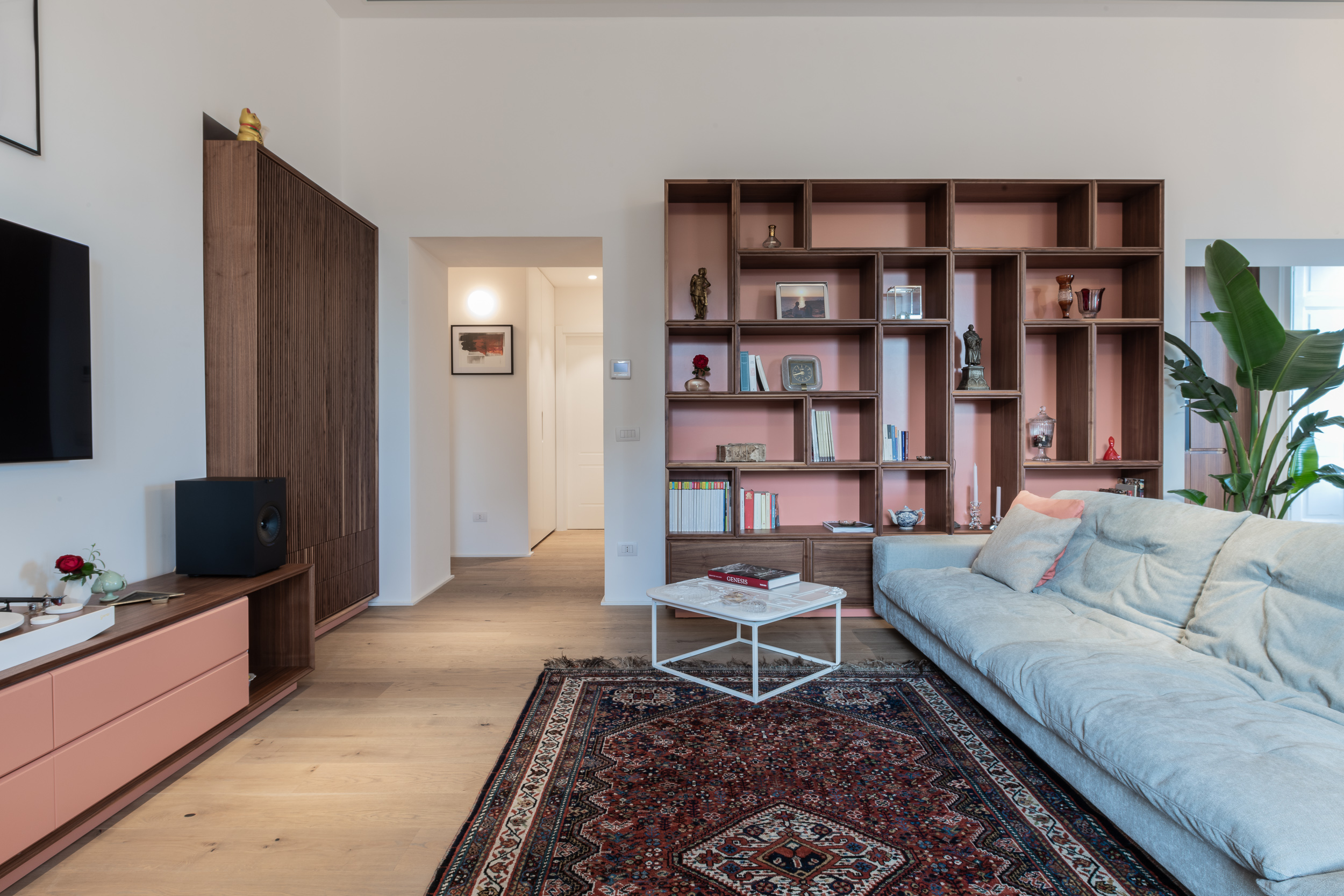 L’appartamento di circa 100 metri quadri si trova all’interno di una villa Liberty degli inizi del Novecento. Il progetto ha interessato tutta l’abitazione, in cui sono stati ridisegnati interamente gli spazi. Il fulcro della casa è una grande zona living, con ambienti contigui di cucina e soggiorno. Mentre la zona notte è contrassegnata dalla zona patronale, con camera da letto, bagno e cabina armadio, e un’altra stanza con bagno. In questa casa abbiamo mantenuto alcuni elementi storici, come gli scuri dell’epoca, che si contrappongono ad altre rifiniture moderne.