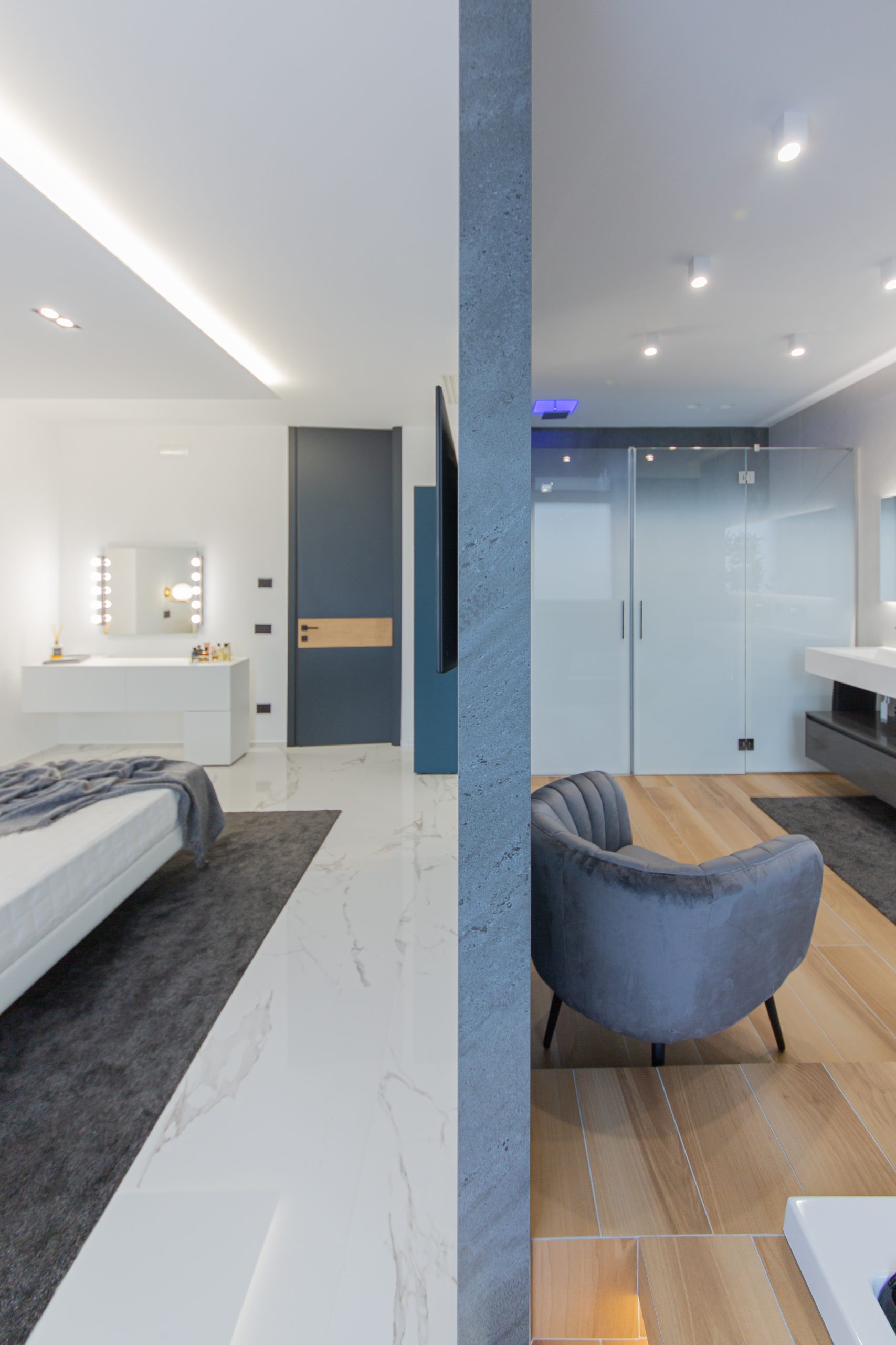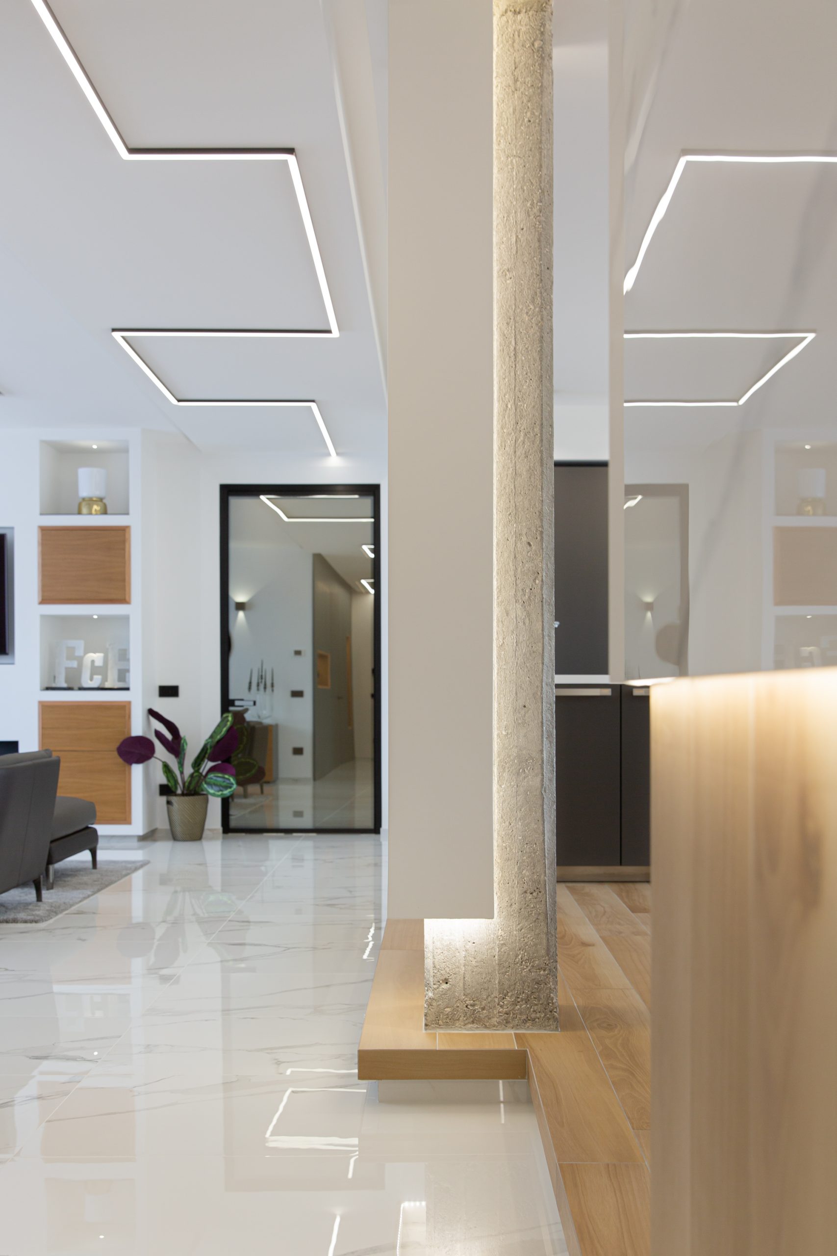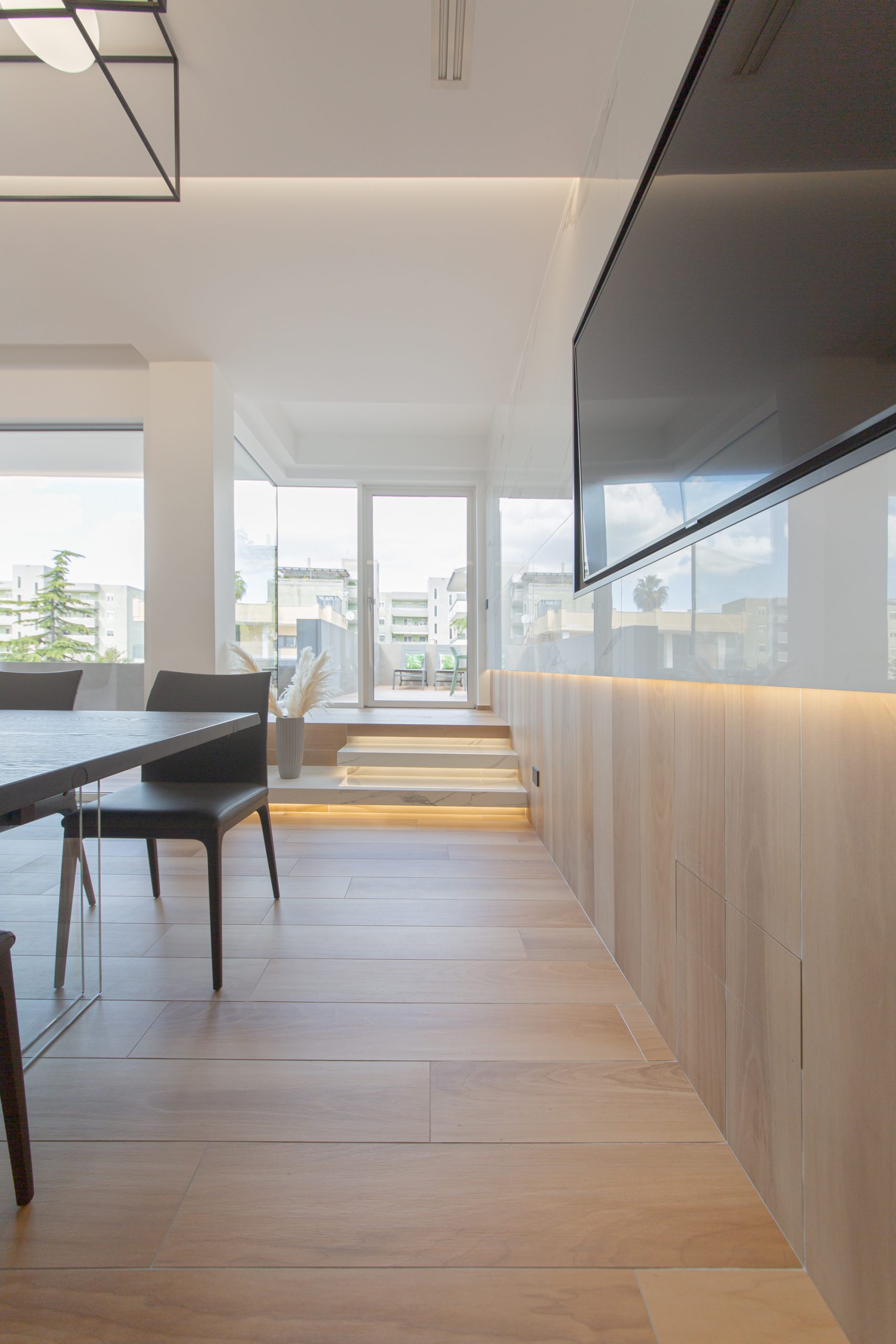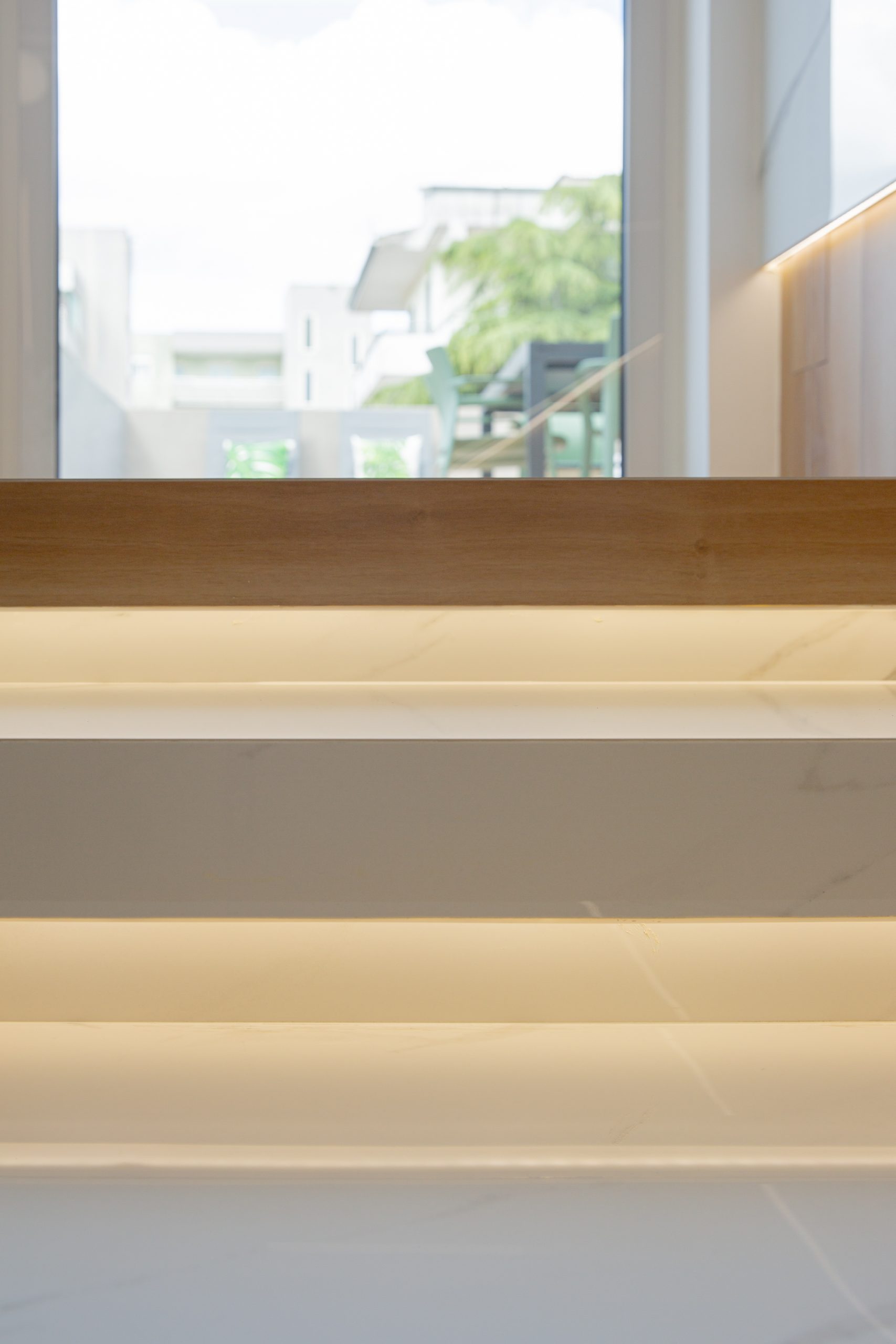 Una concezione di spazio lineare, che dalle cromie alla scelta dei materiali, è stato concepito come un unicum tra interi ed esterni. Viaggiando tra le stanze di casa si percepisce l’intenzione di rendere lo spazio un unico grande contenitore di esperienze da vivere tra l’intimità delle mura domestiche.