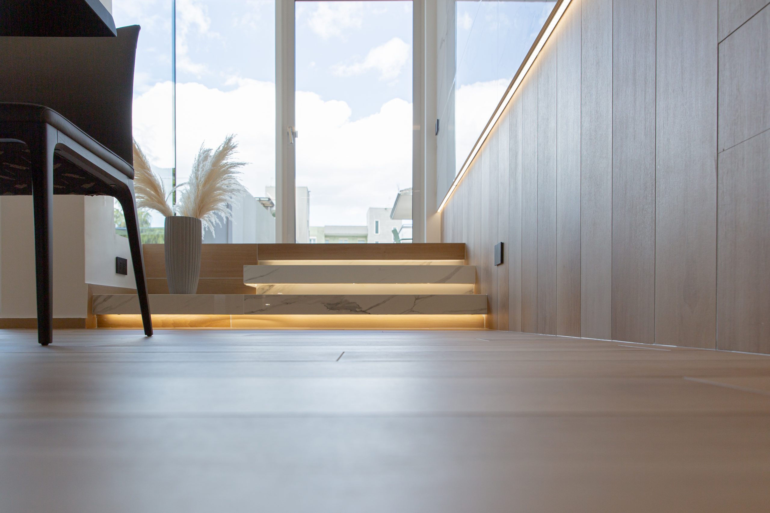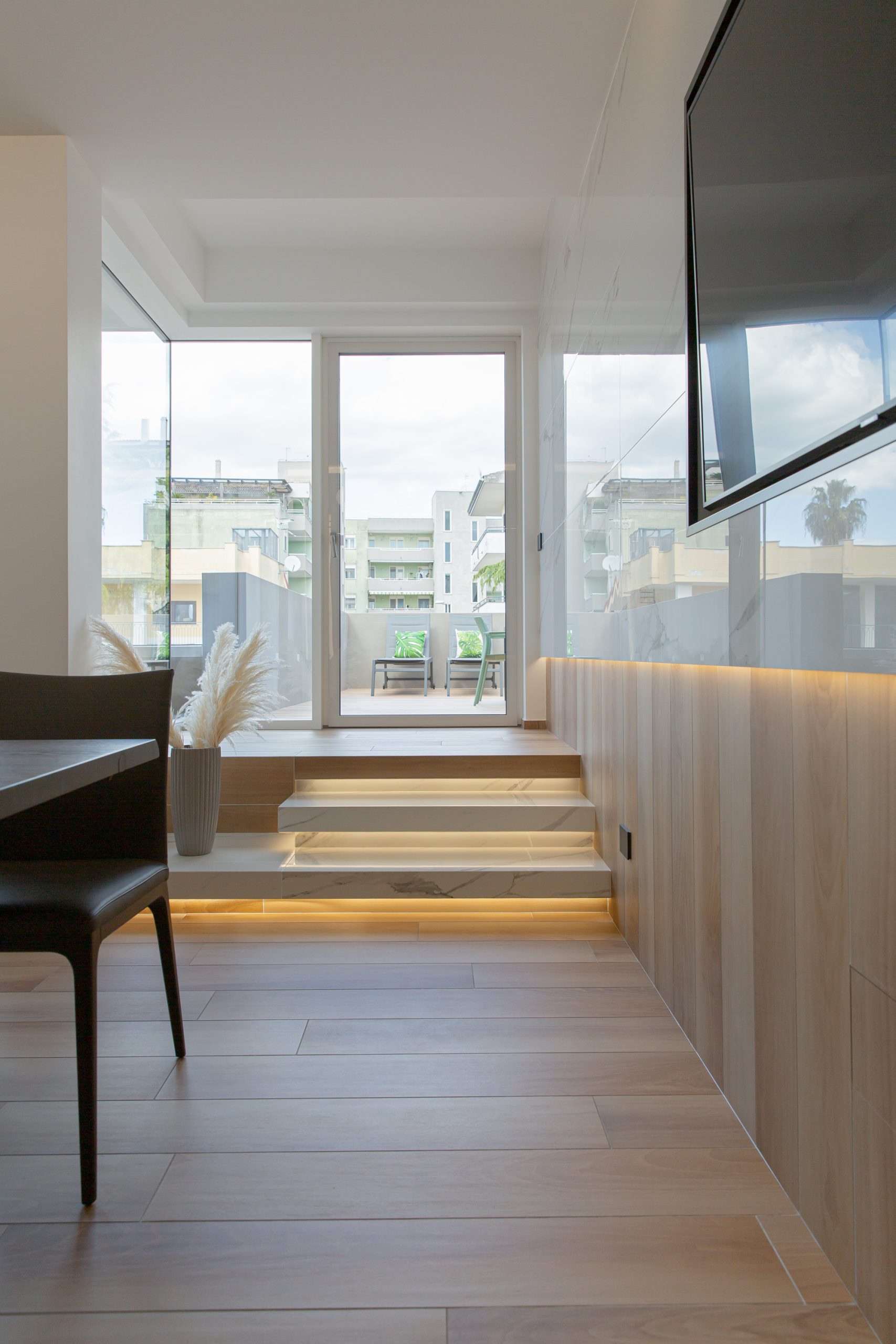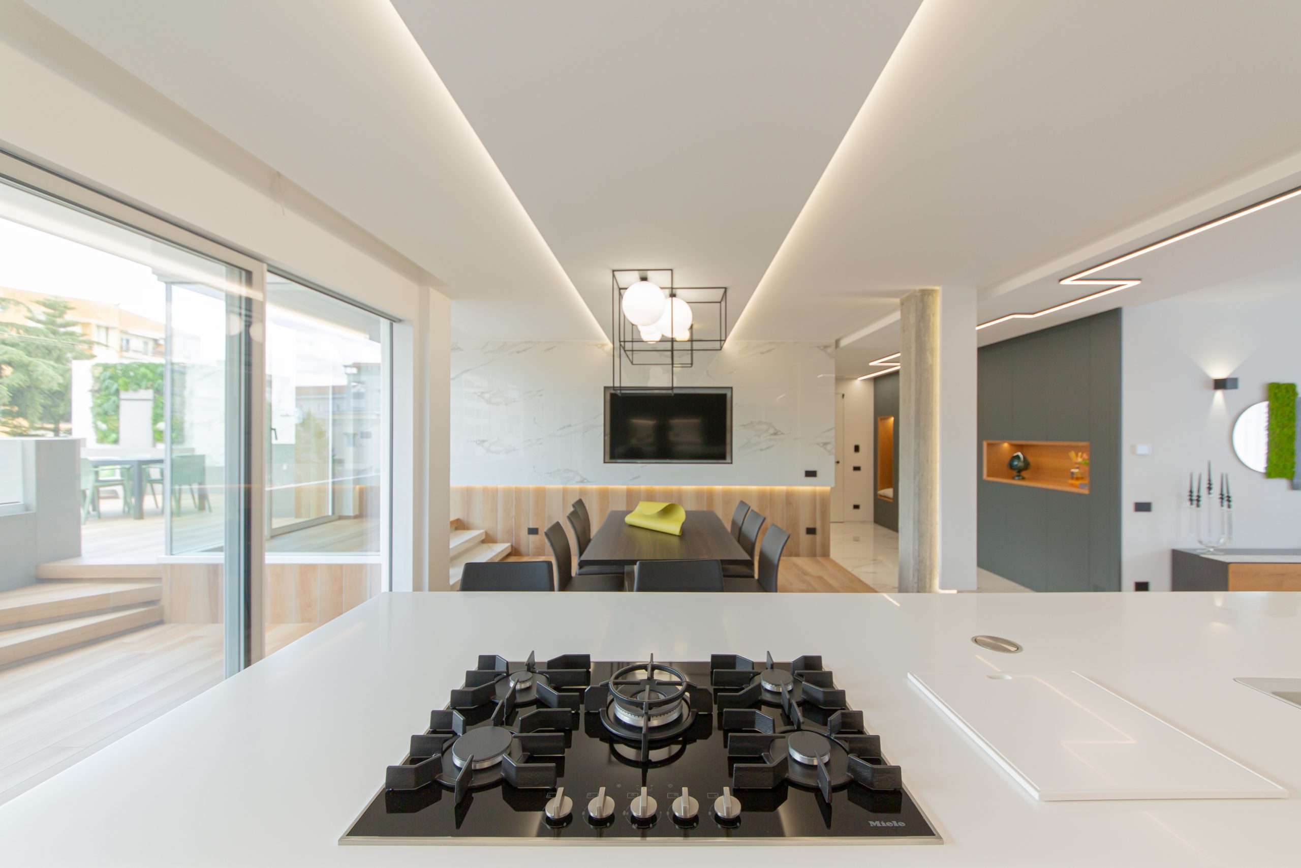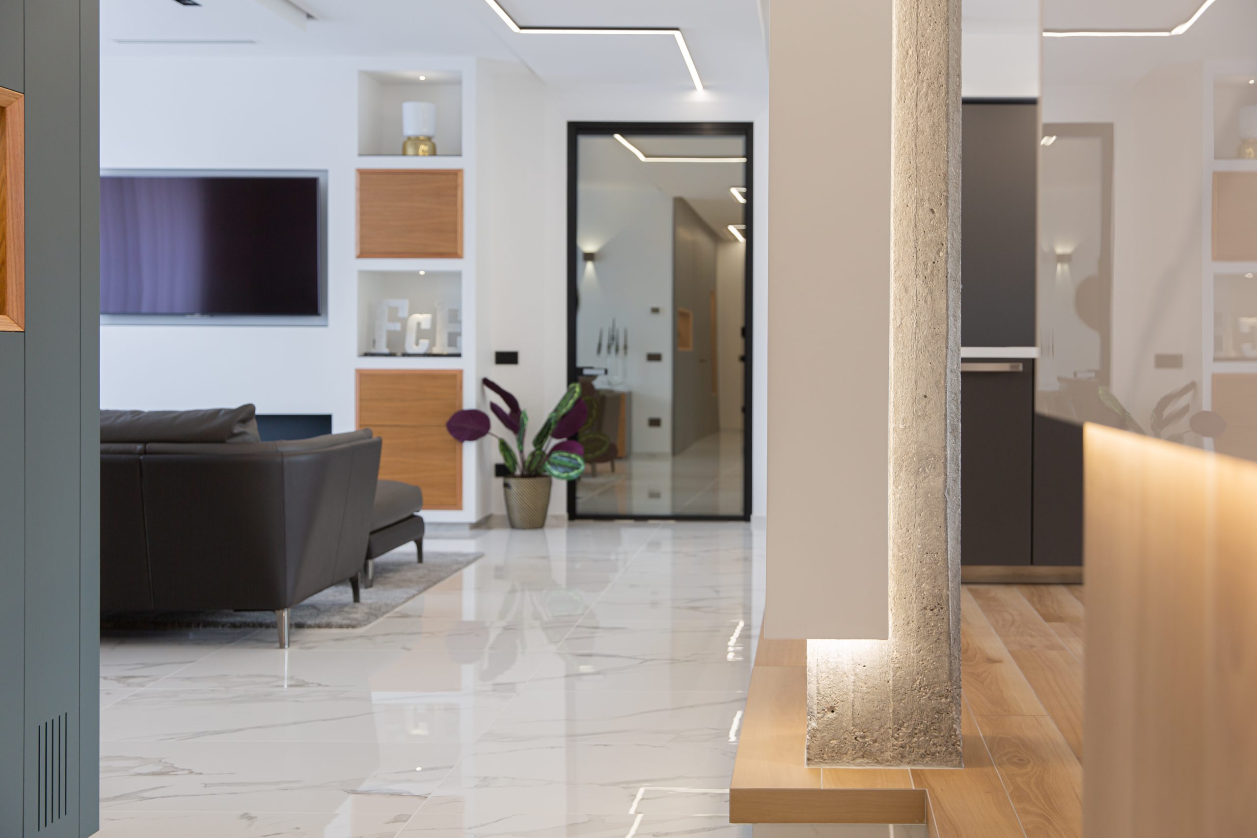 Una concezione di spazio lineare, che dalle cromie alla scelta dei materiali, è stato concepito come un unicum tra interi ed esterni. Viaggiando tra le stanze di casa si percepisce l’intenzione di rendere lo spazio un unico grande contenitore di esperienze da vivere tra l’intimità delle mura domestiche.
