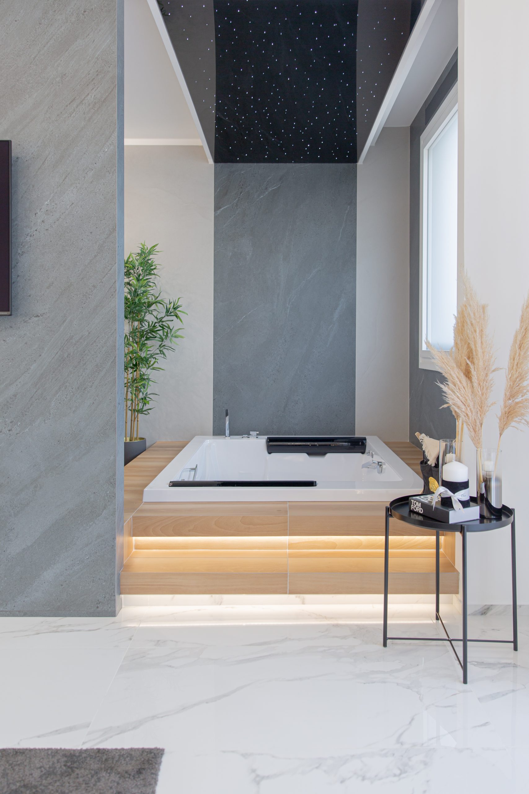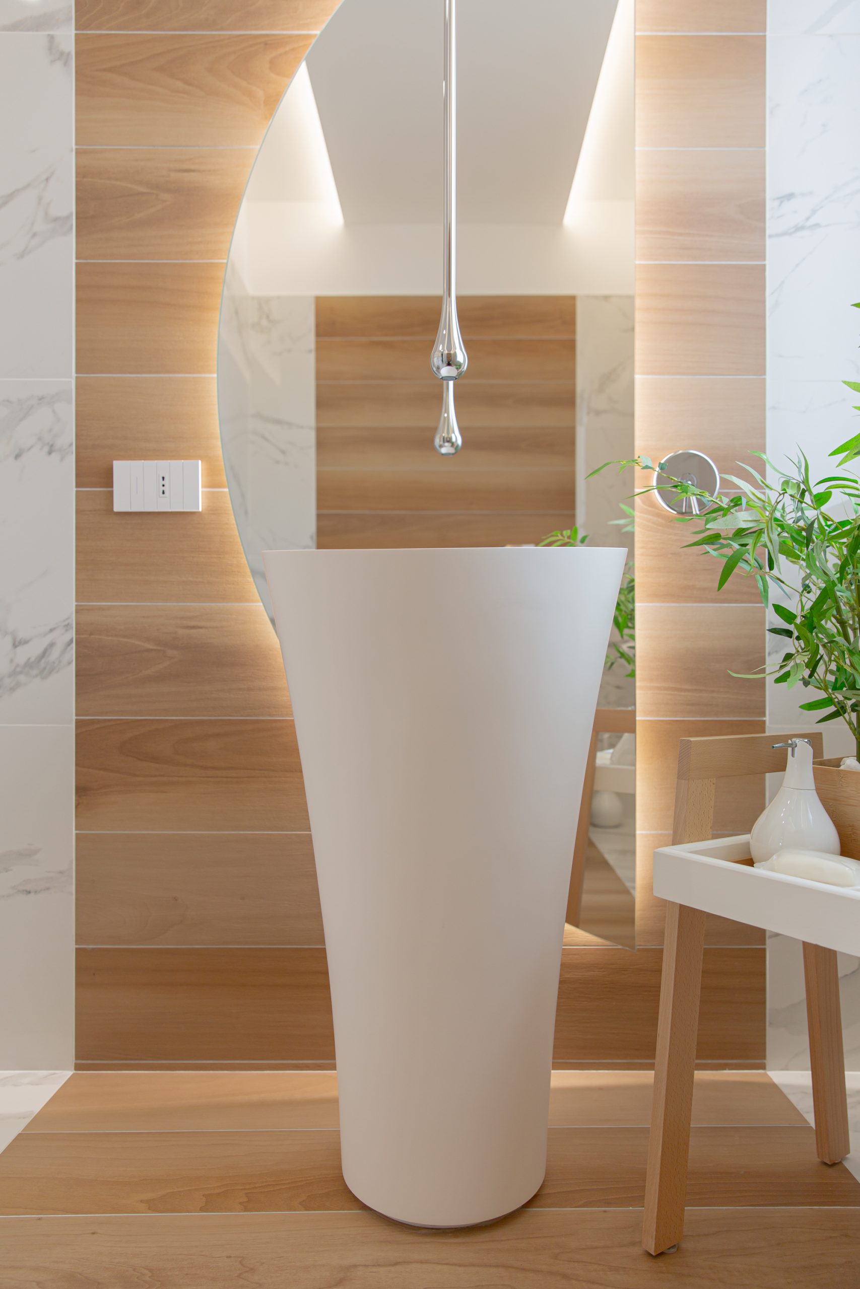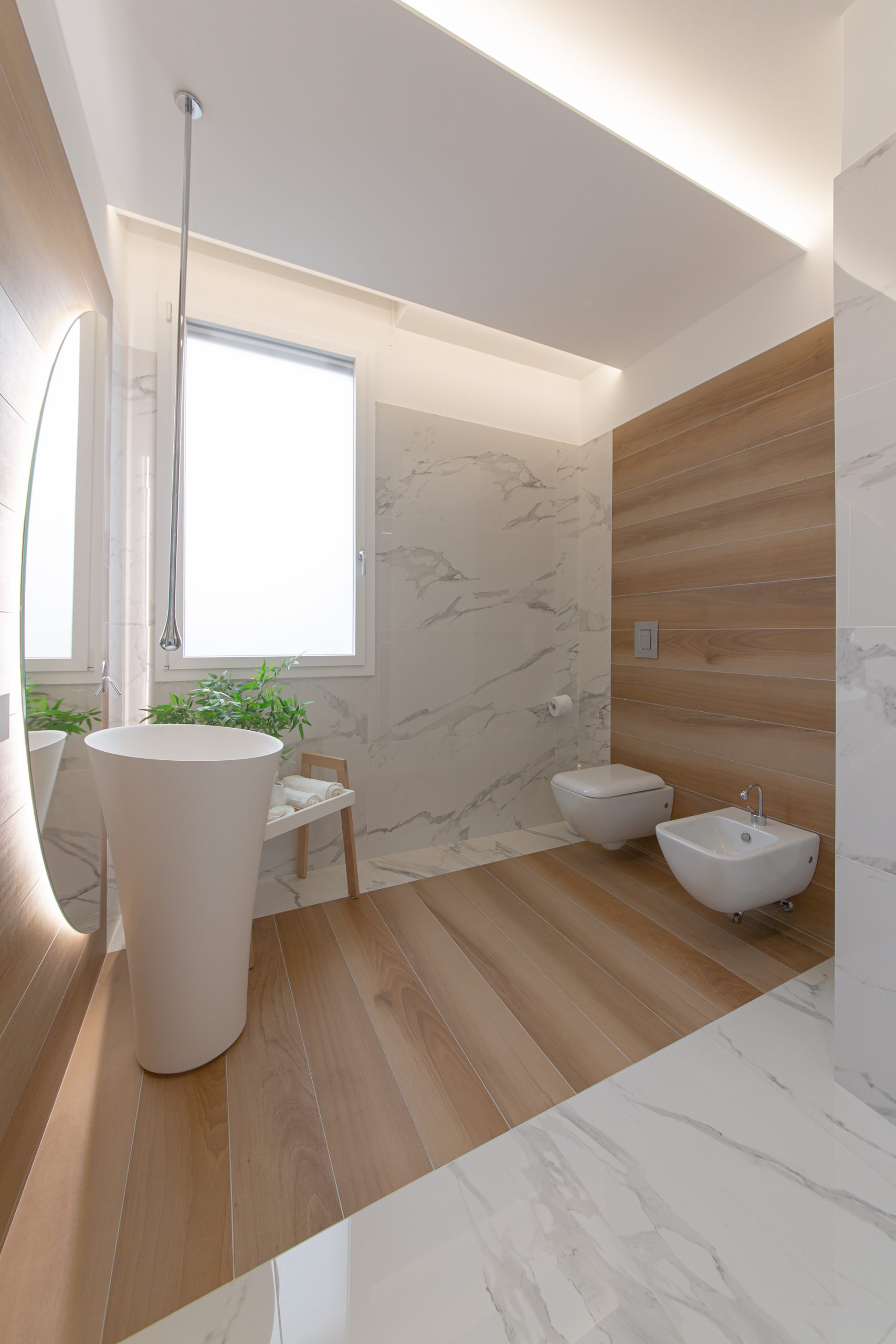 I bagni sono vere e proprie stanze del benessere, dove il design è il vero protagonista. I colori neutri e i materiali naturali.