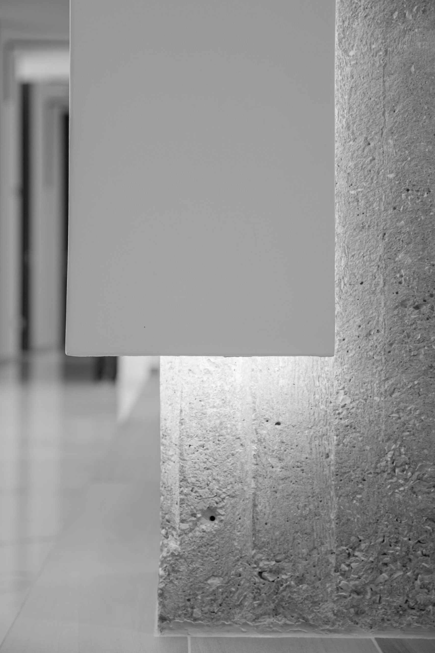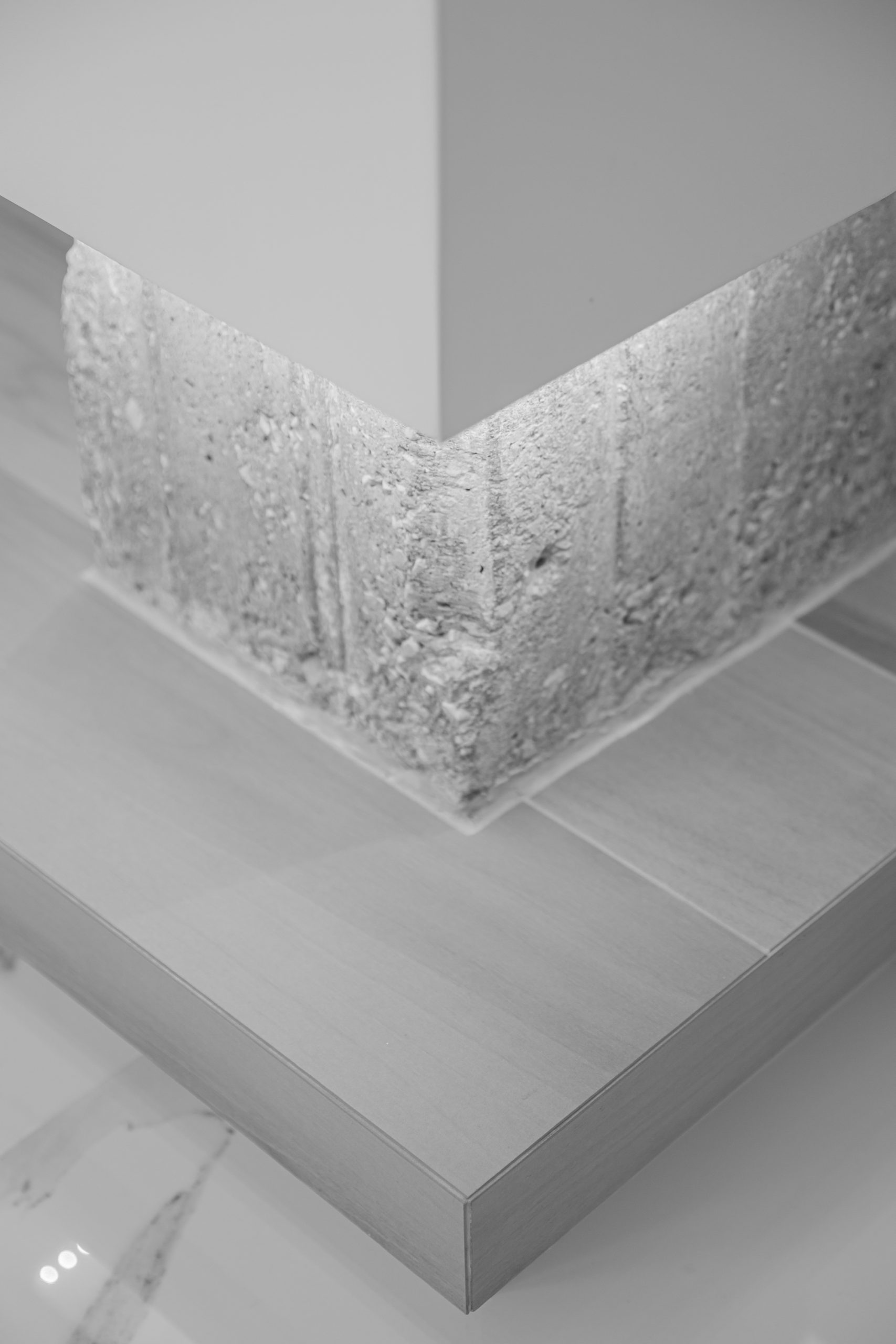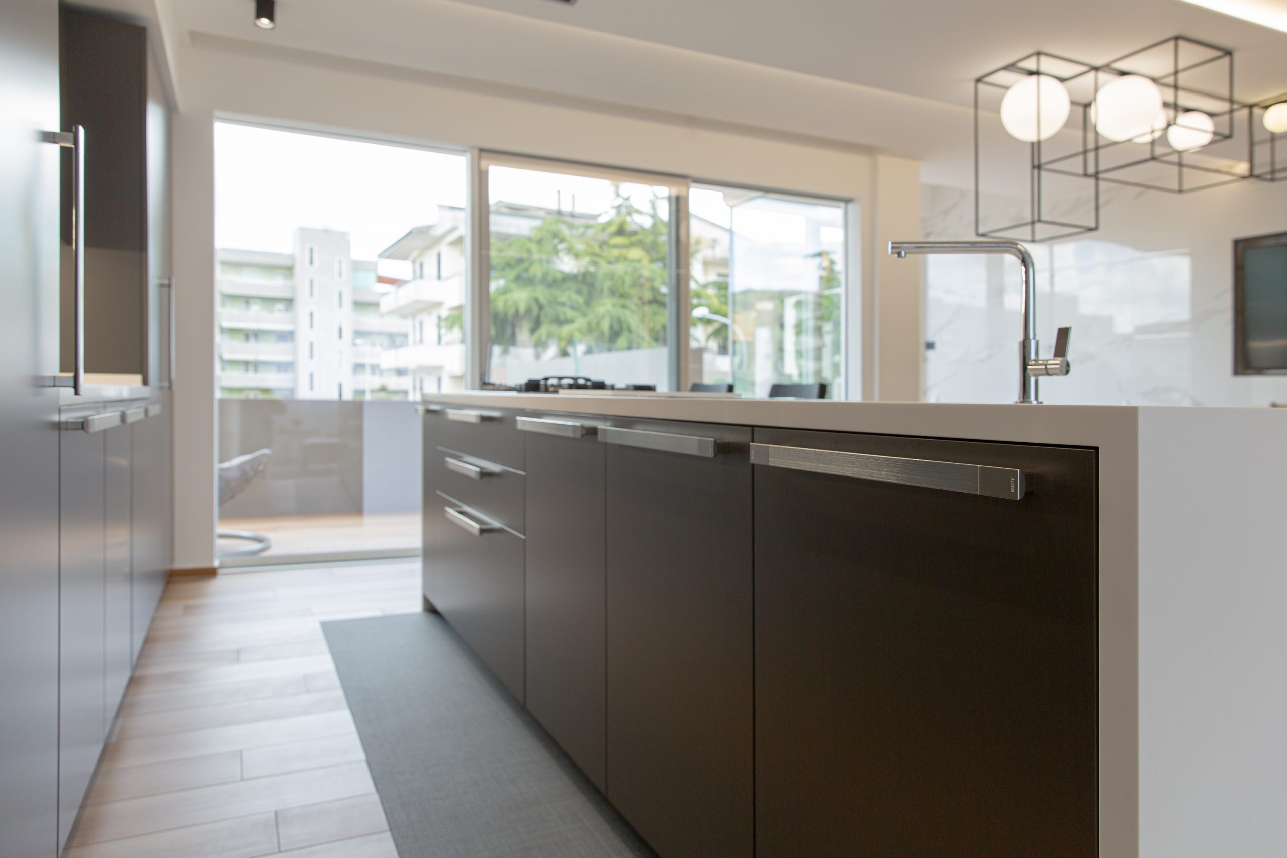 Il luogo del convivere e dell’accoglienza, living e cucina, è stato organizzato come un unico grande open space caratterizzato dall’essenzialità delle linee architettoniche e dei dettagli nascosti ai materiali. Colori neutri ed eleganti, che fanno vagare lo sguardo fino all’esterno.