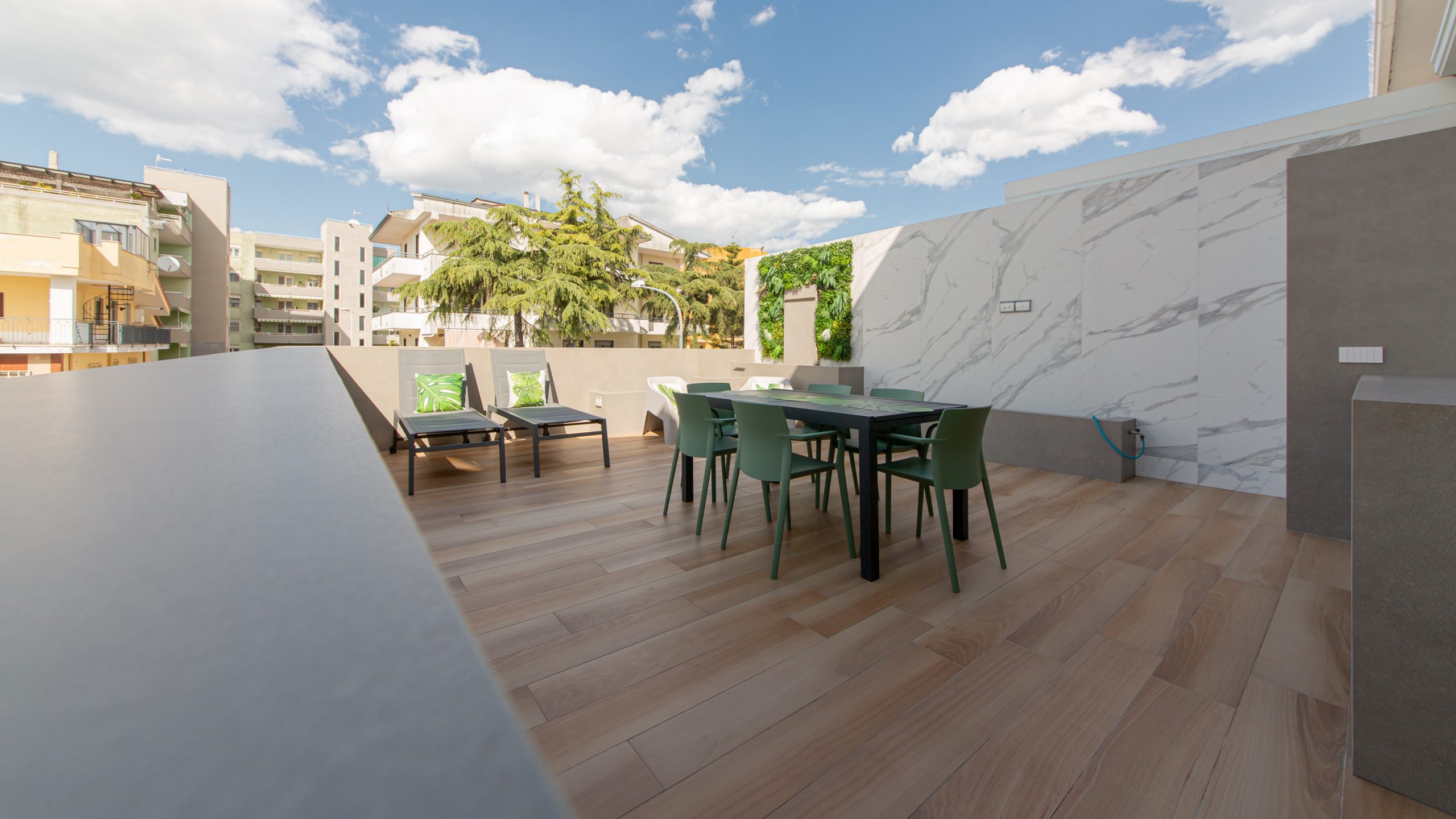 Un occhio particolare va dedicato proprio agli esterni, concepiti come una stanza en plein air, da trasformare in un angolo relax o un luogo conviviale.