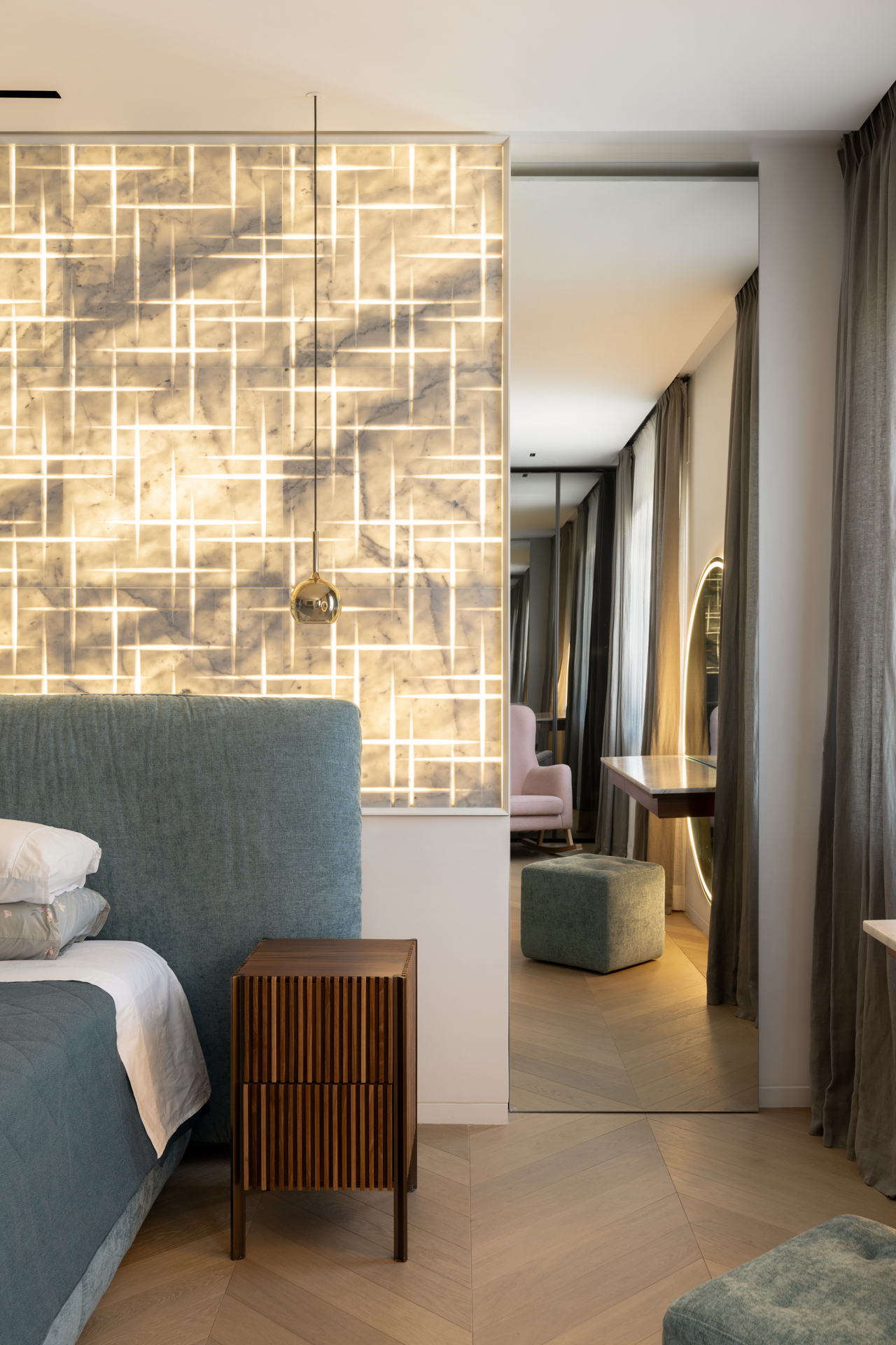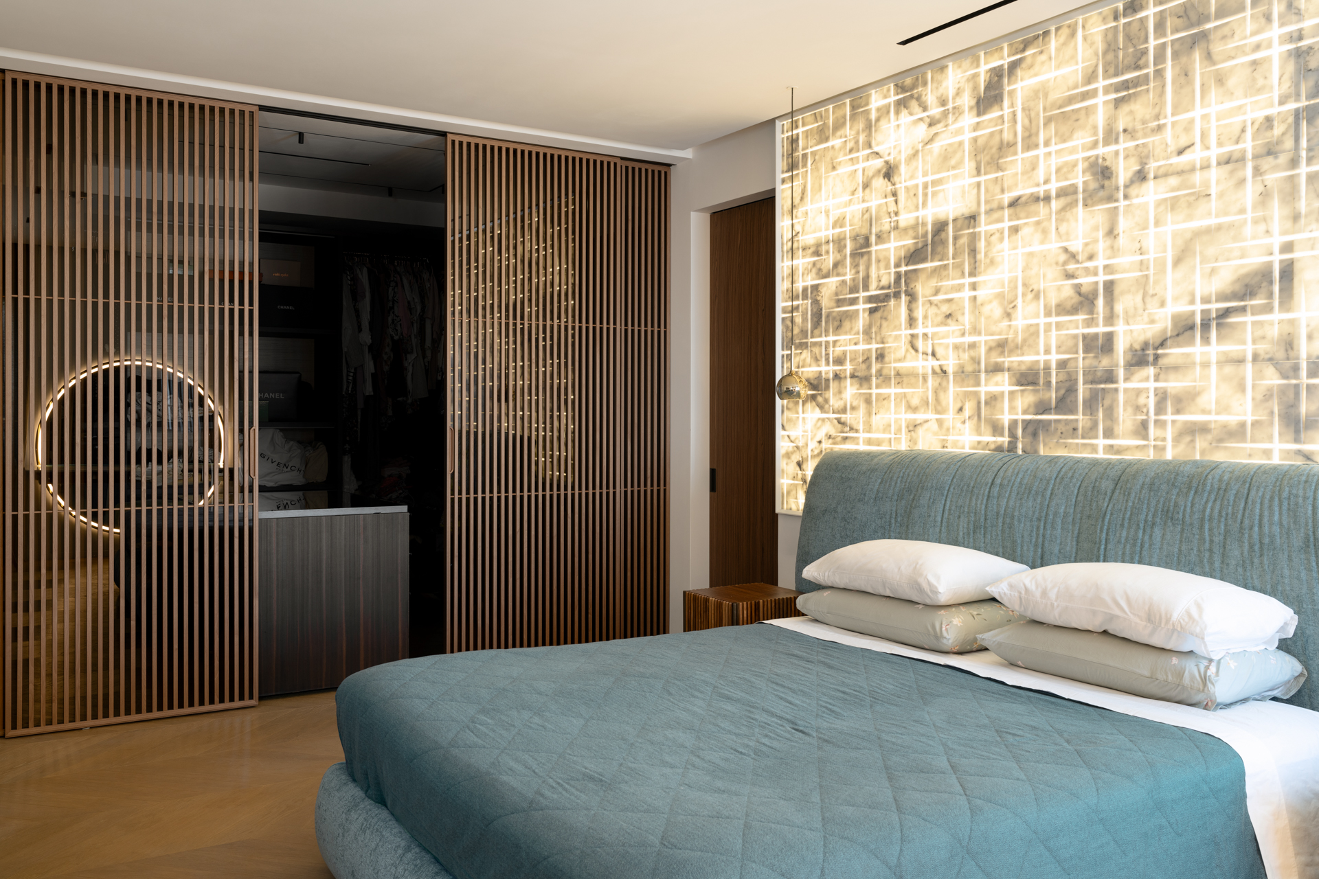 La suite padronale è un vero gioiello, un esempio di lusso e personalizzazione. La stanza è stata progettata con due cabine armadio e due bagni.