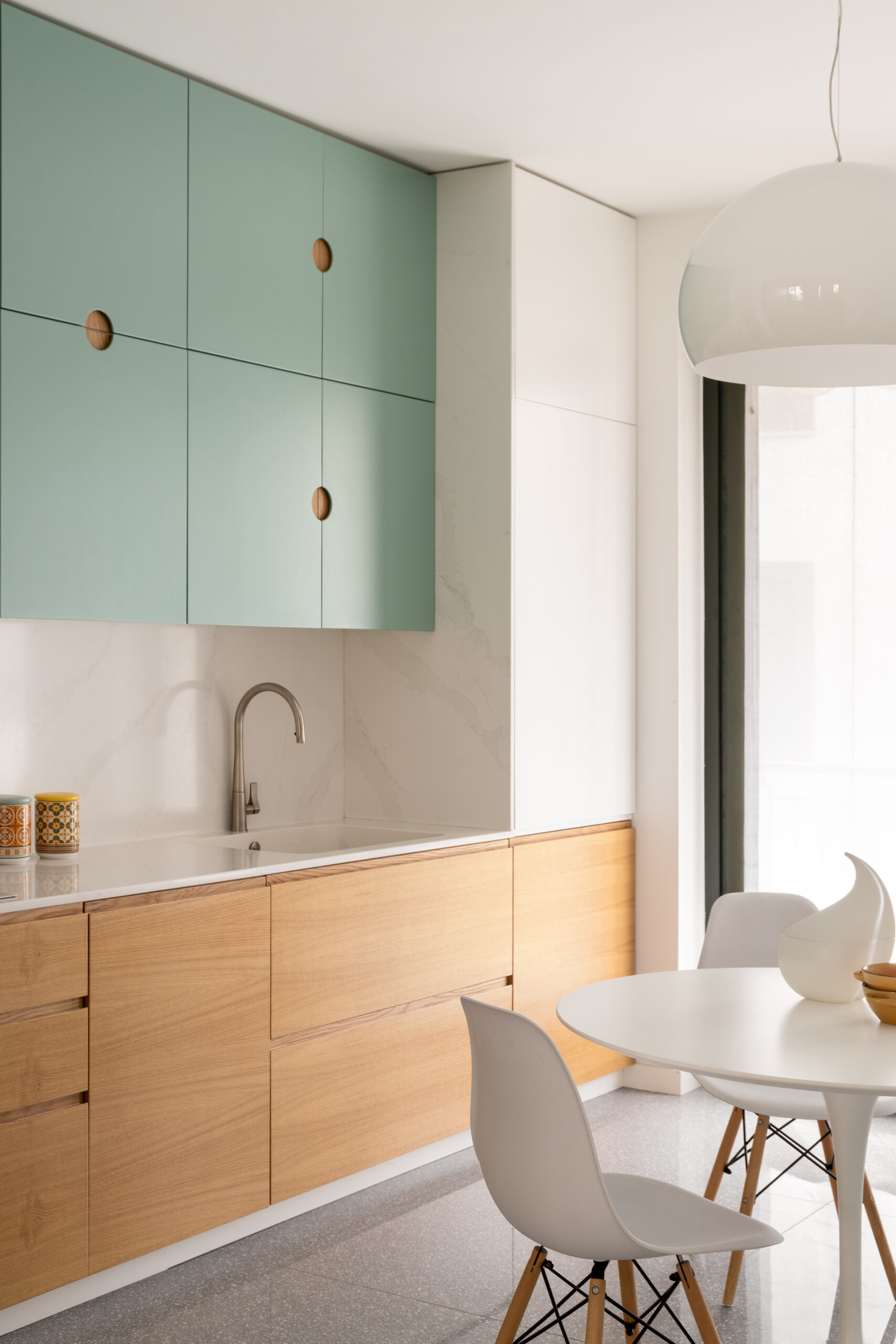 Un intervento che celebra i materiali naturali – legno, marmo e graniglia – che con il tempo si trasformano e raccontano la storia dei luoghi in cui vivono. Un perfetto equilibrio tra funzionalità, estetica e valorizzazione della luce per un appartamento che oggi respira nuova energia.